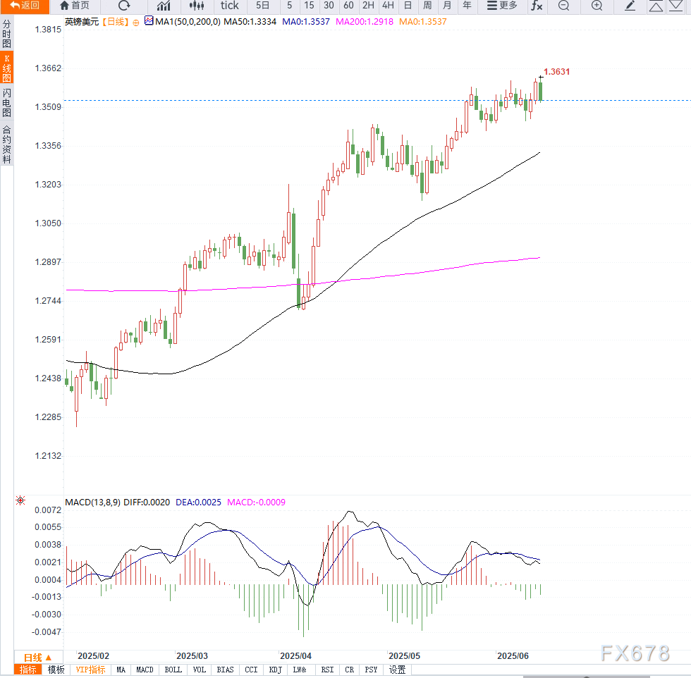 据市场调查显示,在以色列针对伊朗展开大规模打击行动后,避险情绪主导全球金融市场。以色列国防部长卡茨周四晚间宣布对伊朗发动“先发制人的打击”,并宣布国家进入紧急状态,以应对伊朗可能的报复行动。 ![]() 汇丰银行外汇策略主管Paul Mackel指出:“短期内,地缘风险的发酵会令风险资产全面承压,而英镑在此情境下难以独善其身。” 不过,近期美国通胀数据持续降温,使得美联储9月降息预期不断升温,从而在一定程度上抑制美元涨幅,间接为英镑提供一定支撑。 美国劳工部周四公布的数据显示,5月生产者价格指数(PPI)环比上涨0.1%,远低于市场预期的0.2%;核心PPI同样仅上涨0.1%,逊于市场预期的0.3%。数据修正显示前值也比初值更低,显示通胀压力持续减弱。 摩根大通首席美国经济学家Michael Feroli指出:“PPI和核心PPI双双不及预期,佐证通胀持续放缓,强化市场对美联储9月降息的定价。” 从技术图形看,英镑/美元近期高位承压回调,短线支撑位于1.3500关口,若跌破则可能进一步下探至1.3450甚至1.3400区域。上方初步阻力关注1.3600整数位,若有效突破则有望重新上探1.3650及1.3700区域。 ![]() ![]() |
