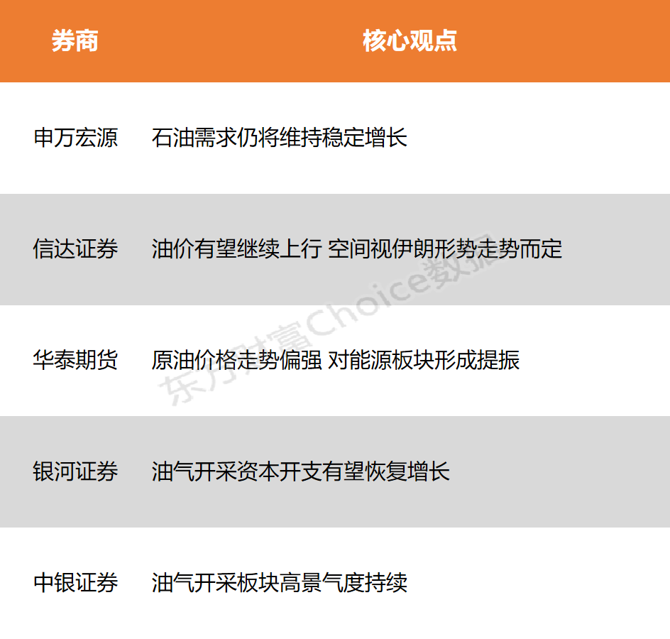 6月13日,两市股指盘中震荡下探,深证成指、创业板指跌逾1%,北证50指数大跌近3%,场内近4500股飘绿。 行业板块多数收跌,采掘行业、贵金属板块大涨,航天航空、石油行业涨幅居前,美容护理、文化传媒、生物制品、多元金融、酿酒行业跌幅居前。 6月13日国际油价大幅飙升,WTI原油盘中突破77美元/桶,最高涨幅达到14.08%,本次上涨主要受地缘政治因素影响。申万宏源表示,预期石油需求仍将维持稳定增长,但增速有所放缓;信达证券指出,油价有望继续上行,空间视伊朗形势走势而定;银河证券认为,25年全球油气开采资本开支有望恢复增长。 ![]() 申万宏源:石油需求仍将维持稳定增长 从历史数据看,石油需求增速与全球经济增速显著正相关,全球货币基金组织预计2025年全球GDP增速也将达到2.8%,因此预期石油需求仍将维持稳定增长,但增速有所放缓。根据美国能源署,2025年在油价中枢下行背景下,中国和美国需求增速提升,与印度等发展中国家共同引领需求增长。 信达证券:油价有望继续上行 空间视伊朗形势走势而定 全年布油均价预计70美元/桶左右,四个季度油价维持高-低-高-低走势判断,油价向上风险看伊朗、向下风险看沙特。三季度在供给端伊朗区域风险酝酿、需求端贸易形势缓和乃至修复背景下,叠加季节性需求旺季,油价有望继续上行,空间视伊朗形势走势而定。 华泰期货:原油价格走势偏强 对能源板块形成提振 受国际油价带动,氛围良好,上游产销无忧,下游积极入市。目前原油价格走势偏强,对能源板块形成提振,PG盘面则呈现筑底态势。就具体基本面而言,关税下调后我国对美采购有所回升,海外供应维持充裕;随着国内炼厂检修结束,国内供应有所增加,整体供应相对充足。 银河证券:油气开采资本开支有望恢复增长 油服油装行业对油价敏感度高,25年全球油气开采资本开支有望恢复增长,国内"三桶油"坚持增储上产将拉动油气设备需求,24年及25Q1行业营收和归母净利润同比分别增长3.7%/4.0%和7.0%/22.4%,盈利能力持续改善。 中银证券:油气开采板块高景气度持续 短期内国际油价面临关税政策与OPEC + 增产的压力,但地缘风险溢价、OPEC + 的干预能力以及全球需求韧性有望支撑油价底部,宏观层面的不确定性或将加大油价的波动水平。中长期来看,原油价格有望延续中高位,油气开采板块高景气度持续,能源央企提质增效深入推进,分红派息政策稳健。油气上游资本开支增加,油服行业景气度修复,技术进步带动竞争力提升,海外发展未来可期。 (本文不构成任何投资建议,投资者据此操作,一切后果自负。市场有风险,投资需谨慎。) (文章来源:东方财富研究中心) |