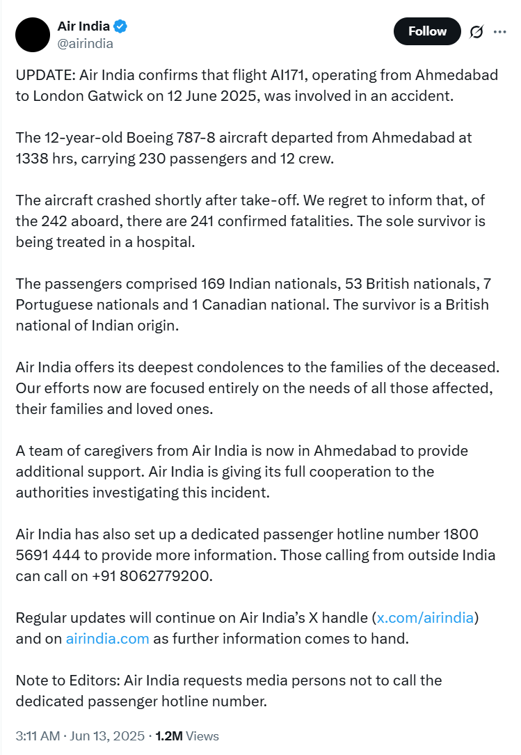 速览 - 网传显示“近日印度客机坠毁前30秒机舱内部画面”的视频,实为2023年1月15日尼泊尔雪人航空YT691航班坠毁事故的现场视频,与近期发生的印度客机坠毁事件无关。 - 据新华社援引印度媒体6月14日报道,印度坠机事故遇难人数已升至274人,其中确认33名地面人员死亡。机上242人中仅1人幸存。事故原因仍在调查中。 事件背景 据印度媒体《印度斯坦时报》报道,当地时间6月12日,印度航空公司一架波音787-8型客机从印度西部古吉拉特邦起飞后坠毁,机上载有242人。 13日,社交平台流传一则视频,称显示了该架客机在坠毁前30秒机舱内部的画面。 ![]() ![]() 网传说法截图。 明查 视频是近期印度客机坠毁画面? 使用InVID软件截取网传视频的关键帧并进行反搜,可以在X、Facebook和YouTube等多个平台找到与网传画面内容一致的视频,发布时间多为当地时间2023年1月15日或16日。 其中,Facebook一则帖文写道:“尼泊尔飞机事故:这是坠机前几秒拍下的视频。遇难者索努·贾伊斯瓦尔(Sonu Jaiswal)来自加济普尔。事发时,他正在飞机内通过 Facebook 进行直播。” ![]() ![]() 海外社交平台2023年1月就已出现近日网传视频。 结合关键词、时间地点并交叉检索确认,该视频为2023年1月15日尼泊尔雪人航空 YT691 航班坠毁事件。失事客机型号为ATR-72,机身编号9N-ANC,与近日印度客机坠毁事件无关。 据英国广播电视台(BBC)报道,索努·贾伊斯瓦尔与其他三名来自印度加济普尔的朋友一同前往尼泊尔旅游,乘坐由加德满都飞往博卡拉的航班。 在其直播视频中,可以看到飞机即将降落时博卡拉机场周边的景象:棕绿色的田野和呈蜂窝状排列的建筑,以及机舱内其他几名乘客。几秒钟后,飞机发生坠毁。 ![]() BBC相关报道截图。 索努·贾伊斯瓦尔的亲属向BBC证实了视频的真实性,他们在其Facebook 账户上看到了这段画面。但由于该账户设置为私密,公众无法直接查看视频内容。贾伊斯瓦尔的一位朋友向BBC记者展示了相关视频片段。 BBC的报道指出,并不清楚索努·贾伊斯瓦尔在飞机上如何访问互联网并进行直播。 根据尼泊尔民航局发布的报告,失事客机于当地时间1月15日上午10时30分从尼泊尔首都加德满都起飞前往博克拉,10时50分与地面失去联系,最终在尼泊尔第二大城市博卡拉附近的赛提河峡谷附近坠毁。尼泊尔雪人航空公司证实,搭乘该客机的68名乘客和4名机组人员全部遇难,是尼泊尔近30年来最严重的空难。 尼泊尔政府航空器事故调查委员会(AAIC)发布最终调查结果报告显示,飞行员操作失误是造成此次灾难最可能的原因。 ![]() 2023年12月28日,尼泊尔政府航空器事故调查委员会发布关于雪人航空公司YT691航班坠机事故的最终调查报告截图。 印度客机坠机事故最新进展 当地时间6月12日13时38分,从艾哈迈达巴德机场飞往英国伦敦盖特威克机场的印度航空AI171航班在起飞不久后坠毁。现场画面显示,客机起飞不久后迅速下降,撞上一栋建筑物后爆炸起火。 ![]() 6月12日,印度古吉拉特邦艾哈迈达巴德客机失事现场。图片来源:新华社 印度民航总局在声明中表示,飞行员在起飞后不久曾向空中交通管制中心发出求救信号,但未再回应空管后续呼叫。航班追踪平台Flightradar24的数据显示,该航班起飞不到一分钟即从雷达上消失。目前,失事飞机的尾部黑匣子已被找到,机头黑匣子的搜寻工作仍在进行。 6月13日,印度航空公司通过社交平台X确认,机上共有242人,已有241人确认遇难,仅1人生还。唯一幸存者为一名印裔英国籍乘客,胸部受伤,目前正在医院接受治疗。 ![]() 印度航空公司13日通过社交平台X发表声明截图。 综上所述,网传显示“近日印度客机坠毁前30秒机舱内部画面”的视频,实为2023年1月15日尼泊尔雪人航空YT691航班坠毁事故的现场视频,与近期发生的印度客机坠毁事件无关。据新华社援引印度媒体6月14日报道,印度坠机事故遇难人数已升至274人,其中确认33名地面人员死亡。机上242人中仅1人幸存。事故原因仍在调查中。 (文章来源:澎湃新闻) |