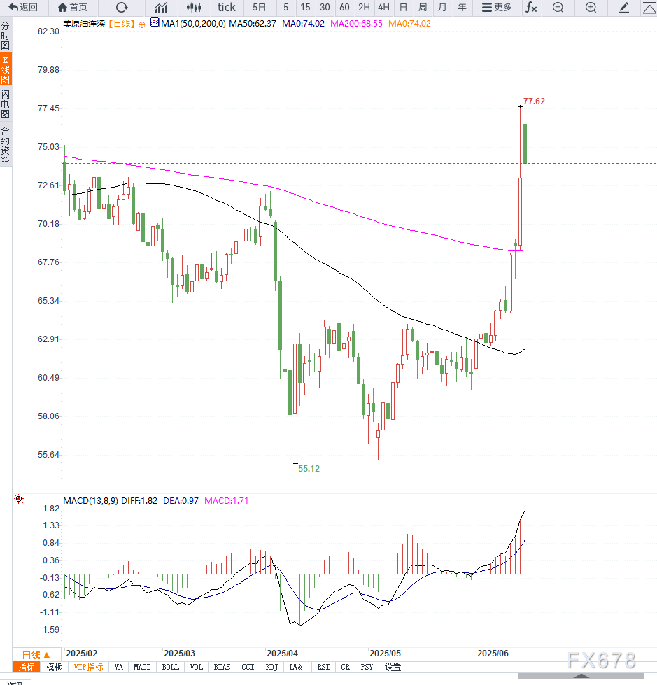 油价连续两日强劲反弹,地缘局势推高市场风险溢价 ![]() 当前冲突的核心隐忧集中在霍尔木兹海峡——这一全球最重要的石油运输通道。数据显示,约占全球总消费量五分之一的石油及其相关产品每天有1800万至1900万桶通过该海峡。一旦该通道受阻,国际市场可能面临严重的供应短缺局面。 Fujitomi Securities分析师Toshitaka Tazawa表示:“油价上涨主要受以色列与伊朗冲突持续推动,目前看不到任何缓解迹象。” 不过他也指出,随着上周五盘中超涨,部分投资者已开始担忧市场是否出现过度反应,短期内或有回调压力。 伊朗产能受关注,OPEC可用闲置产能有限 目前,作为石油输出国组织(OPEC)成员国的伊朗,其原油日产量约为330万桶,其中每日出口量超过200万桶。如果以色列的打击波及伊朗能源设施,可能对其出口能力造成直接打击。 据市场调查显示,OPEC及其盟友(包括俄罗斯)目前的备用产能大致与伊朗的日产量相当,约在300万桶/日左右。然而,由于部分备用产能处于技术瓶颈或政治限制状态,是否能完全弥补伊朗潜在出口缺口仍存疑虑。 在国际社会方面,各方积极展开外交斡旋。美国总统特朗普在周日表示,希望以色列与伊朗能够达成停火协议,但他也补充称:“有时国家之间必须先打完这一仗。”特朗普强调美国将继续支持以色列,但未透露是否曾建议以色列暂停打击行动。 德国总理Friedrich Merz则在七国集团(G7)领导人峰会前表示:“希望本次加拿大峰会能就防止冲突升级达成一致意见。” 然而,据市场调查显示,伊朗方面已通过卡塔尔与阿曼等调解国明确表示,在遭受以色列攻击期间,不会同意任何停火谈判,这也令局势更趋复杂化。 从技术面来看,美国WTI原油日线图上,自5月下旬以来油价已形成明显的V型反转走势,目前运行在主要均线系统上方,短期上升趋势线支撑良好。 MACD指标形成金叉,动能柱持续放大,表明多头力量依旧占优。当前油价已逼近前期高点75美元关口,若能有效突破并站稳,则有望向78美元至80美元的前期阻力区间发起冲击。 但需注意,日线图上的相对强弱指标(RSI)已接近超买区,若地缘消息面未有进一步刺激,不排除高位出现技术性整理或短暂回调的可能。整体来看,短期内油价上行动力仍存,但震荡加剧的概率同步上升,市场情绪将持续受制于中东局势的最新动态。 ![]() 目前国际油市正面临典型的“地缘政治风险溢价”上升周期。短期内,油价将高度敏感于任何有关霍尔木兹海峡安全性的消息。 考虑到OPEC的闲置产能无法完全覆盖伊朗潜在供应缺口,加之全球原油库存处于相对低位,油价易涨难跌。此外,若冲突持续升级,全球经济亦可能因能源价格高企而承压,需高度警惕其外溢风险。 ![]() |