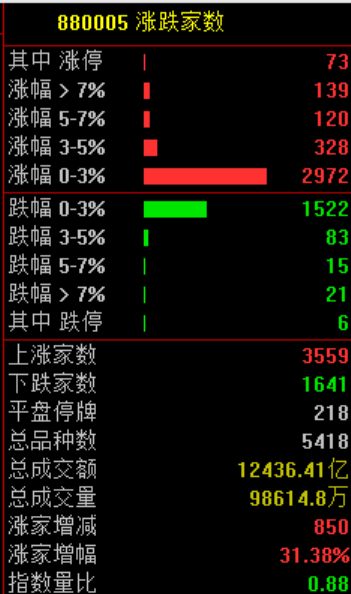 今天继续关注市场消息,多个板块迎来利好,全线上涨! 6月16日,市场全天低开反弹,三大指数集体上涨。截至收盘沪指涨0.35%,深成指涨0.41%,创业板指涨0.66%。 市场共3559只个股上涨,73只个股涨停,164 ...