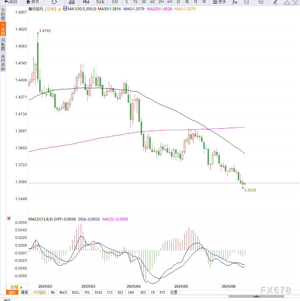美联储决议临近,美元保持观望态势 ![]() 尽管据市场调查显示,加拿大总理马克·卡尼与美国总统特朗普已同意在30天内达成一项新的贸易协议,理论上这将提振对出口高度依赖的加拿大经济,但加元仍在主要货币中表现最弱。 从货币强弱图来看,加元兑澳元下跌0.24%,对大多数主要货币均处于劣势,反映市场对中短期加元前景仍存疑虑,尤其在全球贸易担忧情绪持续存在背景下。 “我们预计如果贸易谈判取得实质性进展,加元将获得更多支持,但短线仍需技术面确认。”——据市场分析师观点 美元兑加元(USD/CAD)日线图显示,该货币对处于明确的下行趋势中,价格运行在所有主要均线下方,显示空头力量占据主导。近期汇价在1.3575附近震荡整理,接近八个月低点1.3540。 若有效跌破该支撑,恐将进一步下探至1.3500甚至1.3420。技术指标方面,14日相对强弱指数(RSI)维持在40下方,动能疲软,反映市场看空情绪浓厚。除非价格强势突破1.3820阻力区,否则整体结构仍偏空。 ![]() 目前市场处于典型的“消息前静默期”,技术面主导短线走势。美联储利率决议将成为决定美元/加元下一步方向的关键。 若美联储维持偏鹰立场并淡化年内降息可能性,美元可能获得支撑;反之若释放宽松信号,加元有望借势反弹,加速跌破1.3540支撑。 ![]() |