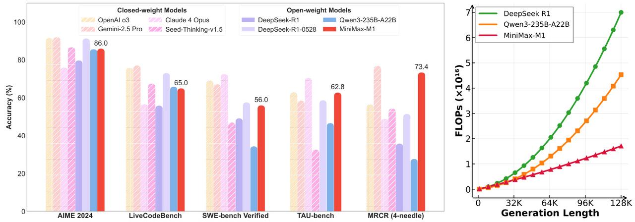 每经记者|陈婷 每经编辑|文多 总部位于上海的人工智能独角兽企业MiniMax突然放了个大招。 6月17日,MiniMax正式发布其自主研发的MiniMax-M1(以下简称M1)系列模型。根据MiniMax方面的介绍,M1被定义为“全球首个开源的大规模混合架构推理模型”。 此外,技术报告显示:M1模型在处理百万Token(大模型处理文本时的最小单位)级长文本的能力方面实现了重大突破,成为上下文最长的推理模型;其RL(强化训练)成本下降一个量级,成本仅53万美金,推理效率则数倍于竞争对手。 今年开年以来,DeepSeek持续冲击着大模型行业的格局,接入DeepSeek-R1一度被很多企业视为拥抱AI(人工智能)的标志。 如今,MiniMax推出号称具备“全球最长上下文”的M1模型,有可能后来者居上吗? 当前上下文最长的推理模型 价格还主打性价比据了解,MiniMax不仅开源了模型权重,还提供了API(应用程序编程接口)服务,价格主打性价比。 其定价策略为: 在0~3.2万(含)Token范围,输入时0.8元/百万Token,输出时8元/百万Token; 在3.2万~12.8万(含)Token范围,输入时1.2元/百万Token,输出时16元/百万Token; 在12.8万~100万Token范围,输入时2.4元/百万Token,输出时在24元/百万Token。 据介绍,前两个档位的定价均低于DeepSeek-R1,而第三个超长文本档位则是该模型目前尚未覆盖的领域。此外,MiniMax宣布,在其自有的App(应用程序)和Web(网络)端,M1模型将保持不限量免费使用。 此外,在长文本能力上,M1模型原生支持高达100万Token的上下文窗口,这一数字与谷歌最新的Gemini 2.5 Pro持平,是DeepSeek-R1(12.8万Token)的近8倍。同时,它还支持业内最长的8万Token推理输出。 图片来源:开源技术报告截图 MiniMax方面表示,实现这一突破的关键在于独创的“Lightning Attention”混合构架。传统的“Transformer”模型在处理长序列时,注意力机制的计算量会随序列长度呈平方级增长,成为制约性能和成本的主要瓶颈。M1的混合架构,特别是注意力机制,能够显著优化长下文输入的计算效率。 就这一模型,知名数字经济学者、工信部信息通信经济专家委员会委员盘和林对《每日经济新闻》记者表示,之前大模型采用的“PPO/GRPO”裁剪方式有一些缺陷,MiniMax通过“CISPO”(Clipped IS-weight Policy Optimization)对这些缺陷进行了一些优化,其目的还是为了降低训练成本和推理成本。 据记者了解,MiniMax此次提出的CISPO算法是另辟蹊径,它没有采用传统算法中调整Token的更新方式,而是通过裁剪重要性采样权重来提升、强化学习的效率、稳定性。 “这是进步,但这个进步是否能够转化为商业价值暂时还不清楚。要看具体工具在应用层面的反馈。”盘和林说。 值得一提的是,今年4月,阿里巴巴开源新一代通义千问模型Qwen3(以下简称千问3),参数量仅为DeepSeek-R1的1/3,成本大幅下降,据称性能全面超越DeepSeek-R1、OpenAI o1等全球顶尖模型。 3月16日,百度正式发布“文心大模型4.5”“文心大模型X1”。据介绍,文心大模型4.5是百度首个原生多模态大模型,API调用价格仅为GPT-4.5的1%。文心大模型X1为深度思考模型,性能对标DeepSeek-R1,调用价格约为其一半。 图片来源:视觉中国-VCG211431510188 大模型还有优化空间,谁找对方向就是下一科技巨头或许可以说,M1是MiniMax憋了许久的大招之一。 在DeepSeek的冲击之下,大模型创业公司今年一开年就面对着战略方向的转折点:是做技术还是做产品? 今年1月,MiniMax创始人兼CEO闫俊杰在接受媒体采访时表示,在更明确“智能水平的提升,没那么依赖很多用户”后,他做出了取舍,结束了整整半年多的焦虑。闫俊杰明确,现在MiniMax最重要的目标不是增长,也不是收入,是“加速技术迭代”。 同样在1月,MiniMax发布并开源新一代“01系列”模型,包含基础语言大模型“MiniMax-Text-01”和视觉多模态大模型“MiniMax-VL-01”。 到了3月,MiniMax对品牌进行了更清晰的拆分,据悉,MiniMax将旗下AI应用“海螺AI”正式更名为“MiniMax”,国内版和国际版同步调整。 5月,MiniMax发布新一代语音大模型“Speech-02”。据介绍,基于超强技术与足够泛化的模型能力,Speech-02为用户带来超拟人、个性化、多样性的语音服务。 虽说在重要性上让步于技术攻坚,但在商业化上,MiniMax在B端(商业端)和C端(消费者端)上皆有布局,对国内市场和海外市场皆有涉猎。 此外,在今年1月发布并开源新一代01系列模型时,MiniMax方面便提及,2025年,AI将迎来至关重要的发展节点,AI Agent(智能体)有望成为新一年最重要的产品形态,引领AI从传统的“工具”角色向更具互动性与协作性的“伙伴”角色转变。 当时,MiniMax便表示:“首先,我们认为这有可能启发更多长上下文的研究和应用,从而更快促进Agent时代的到来;第二,开源也能促使我们努力做更多创新,更高质量地开展后续的模型研发工作。” 国泰海通证券在近期的研报中提及,大模型在多模态理解和复杂推理上的突破,为AI Agent的发展提供了核心技术支撑。AI 应用虽尚处于落地初期,但未来发展路径明晰,当前处于B端萌芽期,未来C端有望大规模爆发,最终将实现B端与C端并行发展,全面推动AI产业繁荣。 MiniMax刚刚推出的M1是否能助力其在AI Agent这一方向上的发展?对此,盘和林肯定其“有帮助”,但认为还没有到革命性的程度,属于渐进性算法优化。 早在今年1月接受采访时,闫俊杰就明确了技术和产品的关系,他表示,更好的模型可以导向更好的应用,但更好的应用和更多用户并不会导向更好的模型。 在DeepSeek火爆