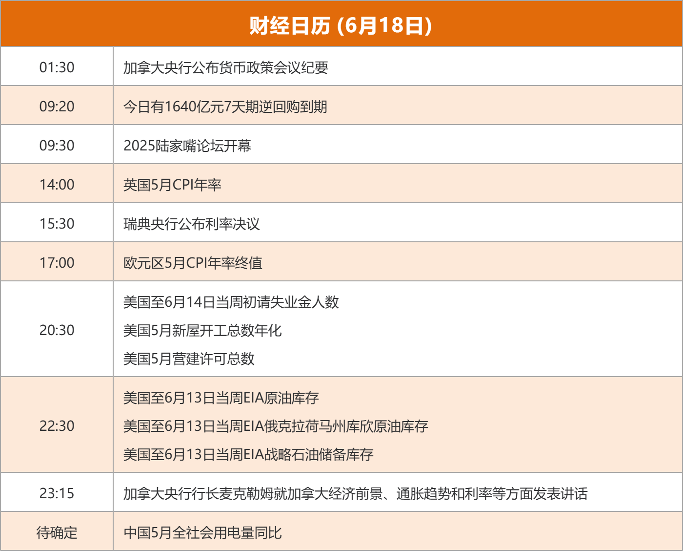 ![]() 每日精选中东局势: 当地时间6月17日,国家主席习近平在阿斯塔纳出席第二届中国-中亚峰会期间会见乌兹别克斯坦总统米尔济约耶夫。两国元首就当前中东局势交换意见。习近平表示,以色列发动对伊朗军事行动,造成中东地区紧张局势骤然加剧,中方对此深感担忧。我们反对任何侵犯别国主权安全和领土完整的行为。军事冲突不是解决问题之道,地区局势升温不符合国际社会共同利益。各方应该推动冲突尽快降温,避免紧张事态进一步升级。中方愿同各方一道努力,为恢复中东地区和平稳定发挥建设性作用。 外交部发言人在答记者问时表示,目前,已有部分中国公民安全撤离至周边国家,外交部及有关使领馆正会同相关部门全力做好在伊朗和以色列的中国公民安全保护工作,迅速组织撤离中国公民。 据美国有线电视新闻网报道,以色列驻美国大使莱特6月16日在接受采访时表示,本周晚些时候将有一场对伊朗的重大军事行动。“当一切尘埃落定,你会在周四晚上及周五看到一些意外惊喜,这场行动会让寻呼机行动看起来几乎是小儿科。”寻呼机行动指的是以色列2024年9月在黎巴嫩实施的攻击,致至少37人死亡,近3000人受伤。 当地时间17日早,特朗普在社交媒体上写道:“我尚未以任何方式、形式或途径与伊朗就‘和平谈判’进行接触。” 当地时间6月17日,以色列战略事务部长罗恩·德尔默发表声明称,以方已摧毁伊朗铀浓缩设施,以方将继续行动。 特朗普在社交媒体上发文称:“我们现在已经完全掌控了伊朗上空的制空权。” 美国总统特朗普发文称,我们确切知道所谓的“最高领袖”(伊朗最高领袖哈梅内伊)藏在哪里。他是一个容易攻击的目标,但他在那里很安全——我们暂时不会对他采取行动(杀掉他!)。喊话伊朗无条件投降。 陆家嘴论坛: 6月18日,2025陆家嘴论坛将隆重开幕,主题为“全球经济变局中的金融开放合作与高质量发展”。中国人民银行、国家金融监督管理总局、中国证监会、国家外汇管理局和上海市人民政府的领导将在论坛上发表演讲。 论坛期间,中央金融管理部门还将发布若干重大金融政策。受访专家认为,本次论坛将成为金融政策密集发布的重要窗口,可关注以下几个方面的看点:深化跨境金融开放与人民币国际化进程、资本市场改革深化与推动中长期资金入市,以及上海与香港国际金融中心的协同合作等。 中欧关系: 英国媒体报道称,欧盟取消了与中国的高层经济对话,因为他们认为与中国讨论贸易问题没有任何意义。对此,外交部发言人表示,今年是中国同欧盟建交50周年,当前国际局势动荡加剧,单边主义经济霸凌甚嚣尘上。中欧加强战略沟通,深化对话合作,有利于双方、有利于世界,中欧一直就经贸等问题保持着沟通,我们愿同欧方一道努力落实好双方领导人达成的重要共识,加强高层交往和对话合作,推动中欧关系行稳致远。 国产芯片: 据报道,台湾当局在美国施压下,将华为和中芯国际列入台湾版的“实体清单”。对此,外交部发言人表示,中方一贯反对美方将科技和经贸问题政治化,泛化国家安全概念,滥用出口管制和长臂管辖,对中国进行恶意封锁打压。民进党当局“跪美”“媚美”,只会害台、毁台。 外汇市场: 国家外汇管理局副局长、新闻发言人李斌就2025年5月外汇市场形势回答了记者提问。他表示,5月份企业、个人等非银行部门跨境资金净流入330亿美元。其中,货物贸易资金净流入保持在较高水平,外资增持境内股票较上月进一步增加,服务贸易、外商投资企业分红派息、对外直接投资等资金净流出总体保持稳定。 量化交易: 今年市场飞速轮动、短线交易难度与日俱增。近期在部分股票交流群里,有投资者再次将矛头指向了量化基金。有市场观点认为,当前量化交易在A股市场成交中的占比已经达到了四成左右。部分量化私募人士认为,近期量化交易在A股市场成交中的占比的确有一定提升。不过对于量化交易占比达到四成这一说法,多数量化私募人士并不赞同。 热点题材人工智能: 国务院国资委召开国有企业改革深化提升行动2025年第二次专题推进会。国务院国资委党委委员、副主任李镇在会上表示,国资国企要加大力度推动传统产业高端化智能化绿色化转型升级。进一步深入应用人工智能、工业互联网、5G等数字技术,推动传统产业转型升级,边远或技术创新相对滞后的地区,要争取乘势而上,形成后发优势。积极用好国家“两重”“两新”有关政策,推动更新升级,实现“老树发新枝”。 阿里巴巴通义千问团队正式推出并开源Qwen3全系列32款MLX量化模型。MLX是由苹果机器学习研究团队开发的,专为苹果芯片设计的一种机器学习框架,可高效地训练和部署AI大模型,已经被越来越多的AI开发者采用。 国内大模型独角兽MiniMax发布世界上第一个开源的大规模混合架构的推理模型MiniMax-M1,这也是“MiniMaxWeek”系列发布活动的首个对外发布。据MiniMax介绍,M1在面向生产力的复杂场景中能力是开源模型中的最好一档,超过国内的闭源模型,接近海外的最领先模型,同时又有业内最高的性价比。 量子计算: 安徽省量子信息工程技术研究中心发布消息称,我国首款面向千比特规模设计的超导量子计算测控系统ez-Q®Engine 2.0正式交付使用,该设备由国盾量子等单位联合研制,将为科研及产业单位提供累计5000多比特的测控服务。 脑机接