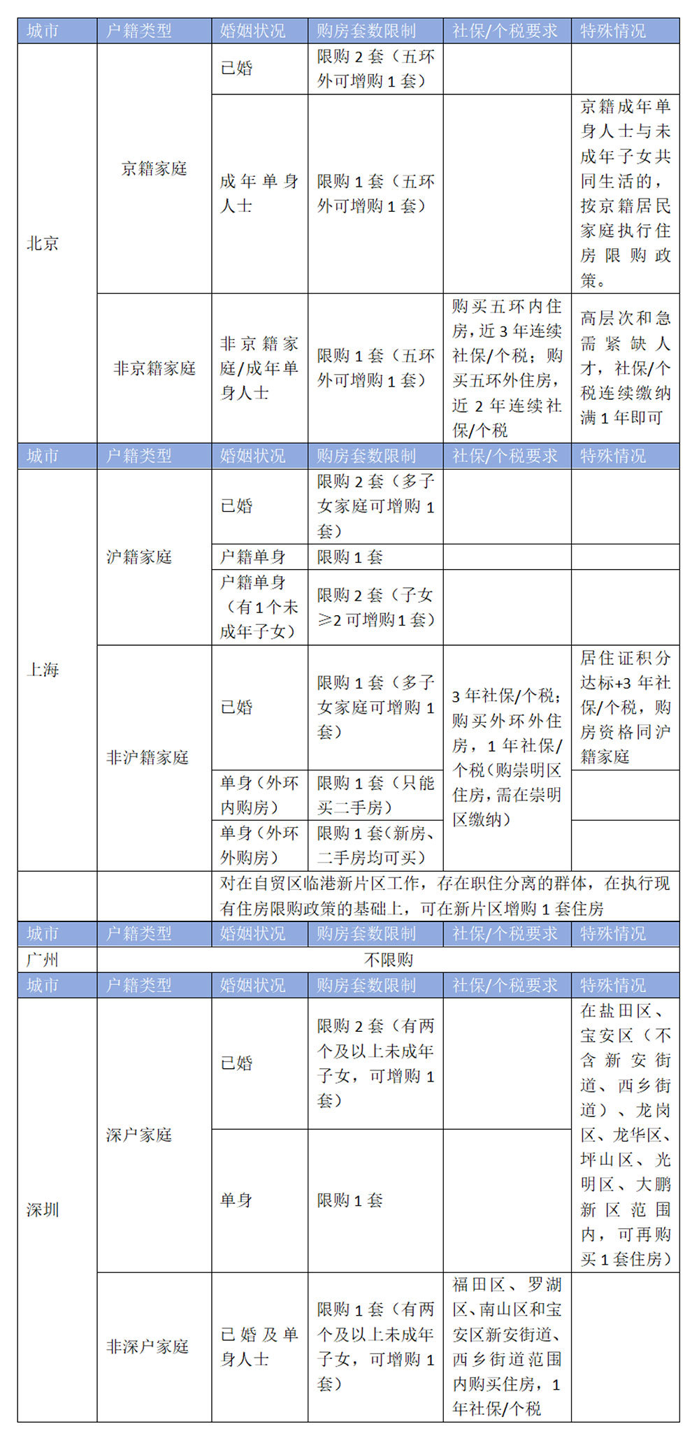 近日,广州市商务局发布《广州市提振消费专项行动实施方案(征求意见稿)》,在有序减少消费限制方面,提出全面取消限购、限售、限价,并降低贷款首付比例和利率。此举标志着广州长达15年的楼市限制政策正式走向终结。 在广州发布松绑政策的同一天,国务院常务会议指出,进一步优化现有政策,提升政策实施的系统性有效性,多管齐下稳定预期、激活需求、优化供给、化解风险,更大力度推动房地产市场止跌回稳。 华泰证券研报显示,本次表态是今年以来国常会首次专门提及房地产,考虑到其指引性意义,预计后续政策空间有望拓宽。 广州结束15年楼市限制政策 从政策轨迹看,广州楼市的限制政策已走过15年。最早在2010年10月,广州市发布“国五条”的本地化版本,开始了广州楼市的限购之路。此后,2013年、2017年,广州限购政策持续加码,2023年开始广州开启松绑进程。 广州大力度退出限制措施其实是在2024年。当年5月,广州宣布取消2年限售政策,9月全面放开限购。彼时限价政策虽未正式发文取消,但实际已不再设定官方指导价。 “从统计局公布的房价数据来看,广州是一线城市中房价下行压力相对大的城市,今年以来一二手房依然处于下行通道。”58安居客研究院院长张波分析道。 从安居客线上的二手挂牌房价来看,6月虽然整体房价已经趋稳,但包括白云、番禺、南沙、增城等外围区域的房价下跌表现仍为明显。因此,通过优化房地产政策,进一步消除行政干预,让市场回归供需主导。 在广州发布松绑政策的同一天,国务院总理李强主持召开国务院常务会议,明确提出“进一步优化现有政策,更大力度推动房地产市场止跌回稳”。这一表述相较此前“持续巩固稳定态势”的提法,政策力度显著升级。 华泰证券研报指出,去年“9·26”以来的政策组合拳颇具成效,但今年4月、5月重点19城销售面积同比增速分别降至7%、0%,说明尚需增量政策持续发力。参照2025年4月政治局会议的表态“持续巩固房地产稳定态势”,此次国常会表达递进为“更大力度推动房地产市场止跌回稳”,更强力度的措辞标志着或有更具针对性的增量政策在路上。 天风证券研报也提及,“多管齐下”反映“促需求”政策将维持全面宽松基调,如门槛放松、成本降低、增量激发等行政手段有望延续。 “激活需求方面,6月13日,广州重申全面取消限购、限售、限价,降低贷款首付比例和利率,预计北上深也有望继续优化限制性政策,促进需求释放。”中指研究院政策研究中心总监陈文静解读道。 其他一线城市会否跟进? “广州取消三限政策是一个重要启示。”上海易居房地产研究院副院长严跃进指出,更大力度推动房地产止跌回稳,重心在于强调力度和方向,从当前房地产市场形势出发,在推动房地产市场回稳方面体现更大力度。各地对房地产市场的认识要更加精准,节奏和力度方面都应有新表现。 不过,在其看来,不同的城市,在政策的表现和宽松形式上是有差异的,也呈现了分化的现象,这也是立足于市场形势的差异而进行的。 从其他一线城市来看,去年以来,楼市的限制措施也在逐步优化退出,不过当前除广州外,北京、深圳和上海仍有保留。 北京上一次大力度调整商品住房限购政策是去年的9月。彼时,北京政策提及缩短非京籍家庭购房所需缴纳社保或个税年限。对非京籍家庭购买五环内住房的,社保或个税缴纳年限调减为“购房之日前连续缴纳满3年及以上”;购买五环外住房的,进一步调减为“购房之日前连续缴纳满2年及以上”。同时,调整通州区住房限购政策,居民家庭购买通州区商品住房,按全市统一政策执行。 上海则先后于2024年的1月、5月以及9月三次优化楼市政策,一系列新政涵盖了放宽购房限制、降低首付门槛、优化贷款利率等。目前上海的限购政策仍按户籍、区域、家庭结构等设置一定的限购门槛;深圳则在去年9月分区调整限购,核心区购房仍需社保或个税证明。 在限售政策上,广州和深圳均已取消限售,其中深圳于去年9月明确取消商品住房和商务公寓转让限制,商品住房和商务公寓取得不动产权登记证书后,可上市交易。上海和北京等地则尚未完全取消限售政策。 在业内看来,一线城市上一轮大力度松绑政策集中于去年的5月及9月。如今广州全面松绑“三限”,后续其他一线城市是否会跟进,又将对全国房地产市场产生怎样的影响,值得持续关注。 以下是澎湃新闻梳理的一线城市目前仍在执行的购房政策(政策未涉及企业、港澳台、外籍人士等): ![]() (文章来源:澎湃新闻) |