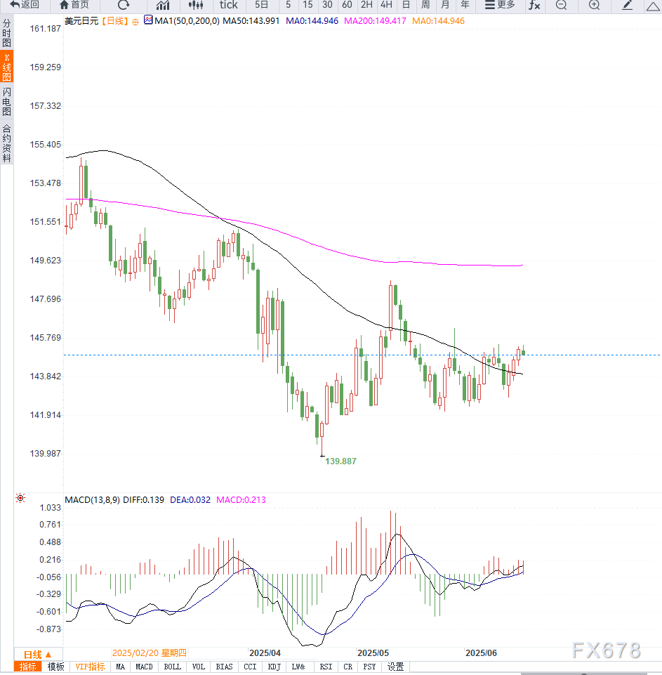 美元兑日元在周三亚洲交易时段再次逼近月度低点,日元连续第四日走软。关键原因之一是日本央行(BoJ)在最新政策会议中释放出“谨慎退出宽松”的信号,削弱了市场对其加息的预期。 ![]() 从美方来看,经济数据同样不佳。美国5月零售销售环比下滑0.9%,远差于市场预期的-0.7%;工业产出亦下降0.2%。据市场调查显示,这些疲软数据进一步坚定了市场对美联储在9月降息的押注。 不过,中东局势升级推动避险资金流入美元,短期内限制了美元的下行空间。投资者目前聚焦于即将公布的FOMC利率决议,尤其是政策声明和“点阵图”,以获取未来利率路径的线索。 从技术角度看,美元兑日元周二突破并收于145.00整数关口上方,为多头提供新的推动力。目前日线图上的技术指标开始重新获得动能,MACD趋于正向扩散,RSI向上倾斜,预示短线上行空间仍在。 若汇价能有效突破145.45月内高点,将进一步确认上涨趋势,并有望冲击146.00关口,甚至测试146.25–146.30区域(对应5月29日的阶段高点)。 相反,若出现回调,145.00将成为首道支撑,进一步下探则关注144.50–144.45区域。若跌破此位,可能引发更大幅度的调整,目标指向144.00、143.50以及上周低点142.75附近。 ![]() 当前美元兑日元走势主要受到货币政策分化的推动。一方面,日本央行维持鸽派立场,缺乏紧缩意图;另一方面,尽管美国经济数据疲弱,美联储的政策仍具有不确定性。 在此背景下,短期内美元兑日元上行动能仍存,尤其若美联储暗示9月后才有降息行动,汇价有望进一步突破上方关键阻力位。 ![]() |