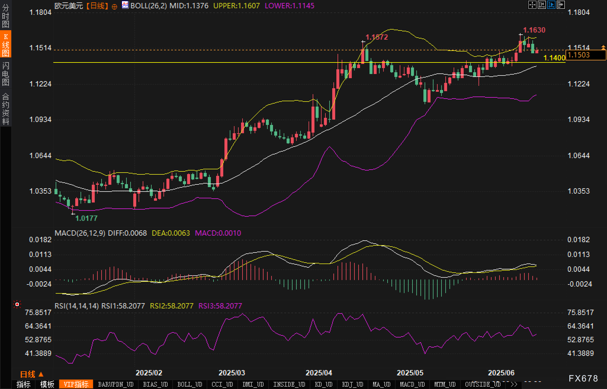 周三(6月18日),欧元兑美元汇价在经历前一交易日的急跌后欧洲时段企稳于1.1500附近,日内略有反弹,整体依旧承压。当前市场焦点集中在中东局势的急剧升温,以及美联储利率决议临近带来的不确定性。尽管美国零售数据疲弱对美元构成一定压制,但地缘风险导致避险情绪升温,美元指数获得支撑,令欧元反弹乏力。 ![]() 欧元近期承压主要源于中东地区冲突升级,据路透,美方言辞激烈,特朗普更是扬言对伊朗进行军事打击,这令市场担忧地缘局势或将全面升级,风险资产抛压加剧。与此同时,原油价格飙升至75美元附近,较5月上涨约16%,这对以原油为净进口国的欧元区构成双重打击,增加输入型通胀风险,并压制经济增长预期。 美国方面,尽管5月零售销售数据因贸易前景不明而逊于预期,但市场并未大幅调整美元持仓,核心原因仍在于市场情绪主导权转向地缘局势和美联储政策前景。美国联邦基金利率决议将在北京时间周四凌晨公布,市场预期此次将按兵不动,重点转向点阵图和经济预期的修订内容,若透露鹰派倾向,美元或进一步走强。 技术面: 从日线图观察,欧元兑美元整体仍处于中期上升趋势中,但近期高位整理态势明显。当前价格运行于布林中轨上方,且短线受阻于1.1630一线未能突破,构成阶段性顶部。MACD指标柱状图缩小,DIFF线与DEA线趋于粘合,表明动能趋弱,存在调整风险。布林带呈现轻微收口迹象,显示波动率有所收敛,后市或将进入震荡整理阶段。 ![]() RSI指标目前位于58附近,处于中性偏强区域,显示汇价尚未进入超买区,仍具备一定上行空间,但需警惕高位震荡带来的回撤压力。 市场情绪观察 当前市场明显处于“高警戒”状态。中东冲突升级引发的避险情绪推升美元买需,而欧元作为风险敏感资产则承压回调。从资金流动层面观察,市场倾向于回避高贝塔资产,转而配置美元与黄金等避险资产,短期内汇价反弹受限。同时,市场普遍观望美联储最新点阵图变化,进一步压制欧元波动空间。 此外,通胀数据的回落令市场部分资金押注美联储年内或仍有降息空间,然而地缘局势干扰基本面预期,形成短期矛盾,市场共识尚未形成,汇价走势震荡为主。 后市展望 短期展望: 短线来看分析认为,欧元兑美元若未能有效突破1.1570-1.1630阻力带,则可能继续维持区间震荡格局。若晚间美联储释放鹰派信号,美元走强,汇价或再度回测1.1400支撑,甚至跌向布林带下轨1.1145区域。 中长期展望: 分析认为若中东局势逐步缓和,市场风险偏好修复,叠加欧元区基本面稳定,欧元有望重拾升势,挑战年内高点1.1630甚至进一步上探1.18关口。但当前需重点关注布林中轨1.1376一线的得失,作为趋势转折的重要参考。 ![]() |
