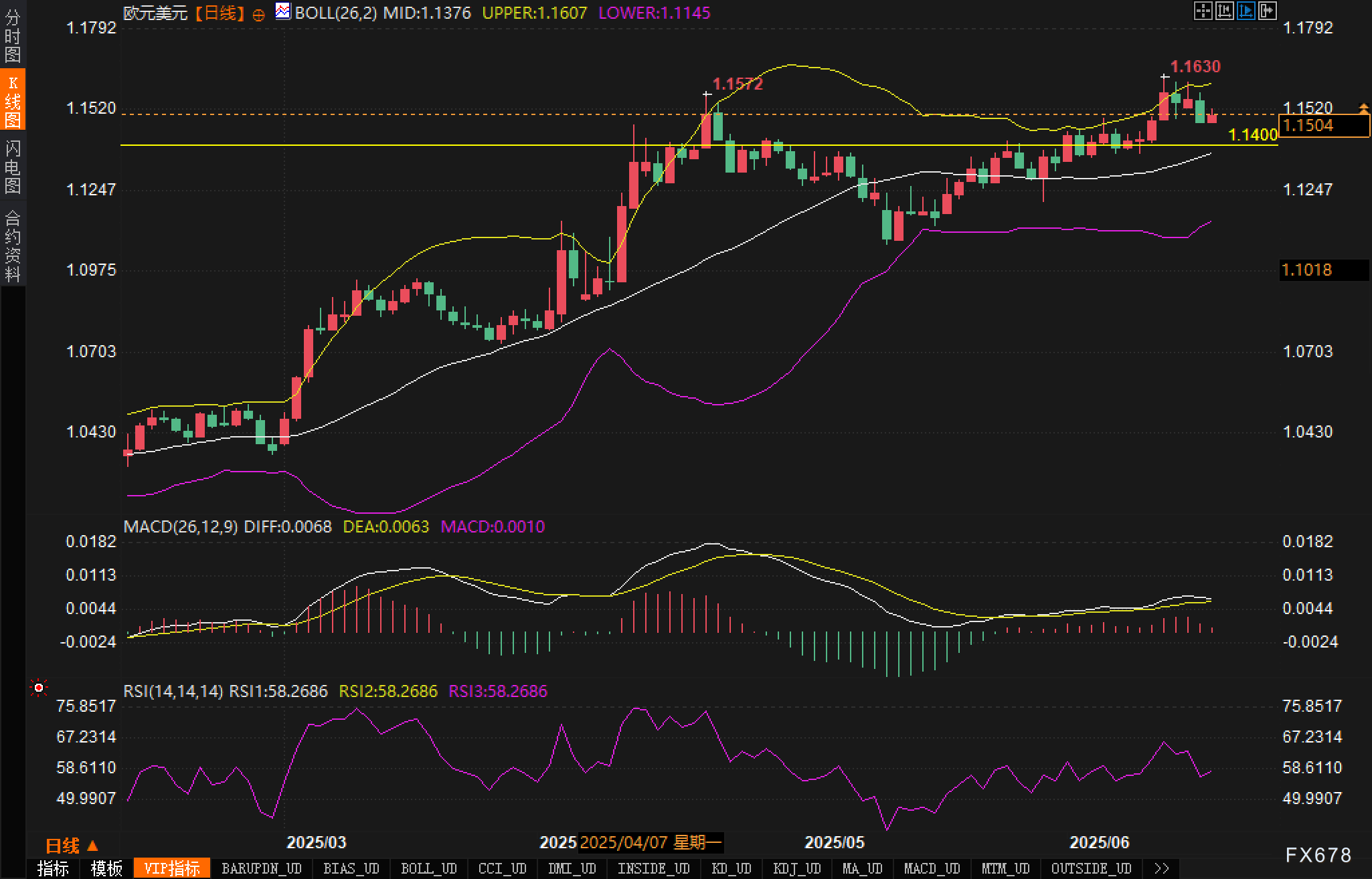 周三(6月18日),欧元兑美元汇价北美时段小幅反弹,当前交投于1.1500附近,整体走势承压。市场避险情绪升温,美元获得支撑,主要由于中东局势持续恶化,美国总统特朗普强硬言论强化干预预期,同时市场观望即将召开的美联储FOMC会议。欧元区方面,5月HICP年率终值维持在2.3%,通胀数据未有新意,亦难提供更多支撑。整体来看,汇价仍处于关键技术水平附近震荡整理。 ![]() 技术面: 从日线图观察,汇价自5月以来持续震荡走高,但近期在1.1630附近遇阻形成双顶形态。布林带指标显示价格运行于中轨与上轨之间,短期受制于布林上轨(当前约1.1607),上方压力显著。K线组合上,出现多根带长上影线的K线,显示上方抛压沉重,1.1630和1.1572为短线阻力位。下方关键支撑位于1.1400心理关口,若跌破恐引发进一步回撤。 ![]() 技术结构上,分析认为汇价虽维持高位盘整,但动能指标背离现象显现,结合阻力压制与消息面压顶,短期向下调整风险升温。 市场情绪观察 地缘政治与宏观不确定性加剧,使当前市场情绪表现为高度谨慎甚至略显恐慌。一方面,交易员担忧美国若进一步介入中东冲突,将引爆更广泛的避险潮,从而推高美元需求,打压欧元走势;另一方面,近期油价飙升超过3%,短短一个月涨幅达16%,对欧元区这一能源净进口经济体形成额外通胀与增长压力,进一步打压市场对欧元前景的信心。当前市场风险厌恶情绪主导,短线多头谨慎观望,空头情绪略占上风。 后市展望 多头展望: 分析认为若美联储立场偏鸽派,叠加美国就业数据持续疲软,美元存在阶段性回调空间;欧元有望突破1.1630,向1.1700发起冲击。 空头展望: 分析认为若地缘局势继续恶化,美方军事行动成真,避险情绪恐全面爆发,美元避险属性被强化,欧元可能进一步测试1.1400甚至1.125区域的强支撑。 ![]() |