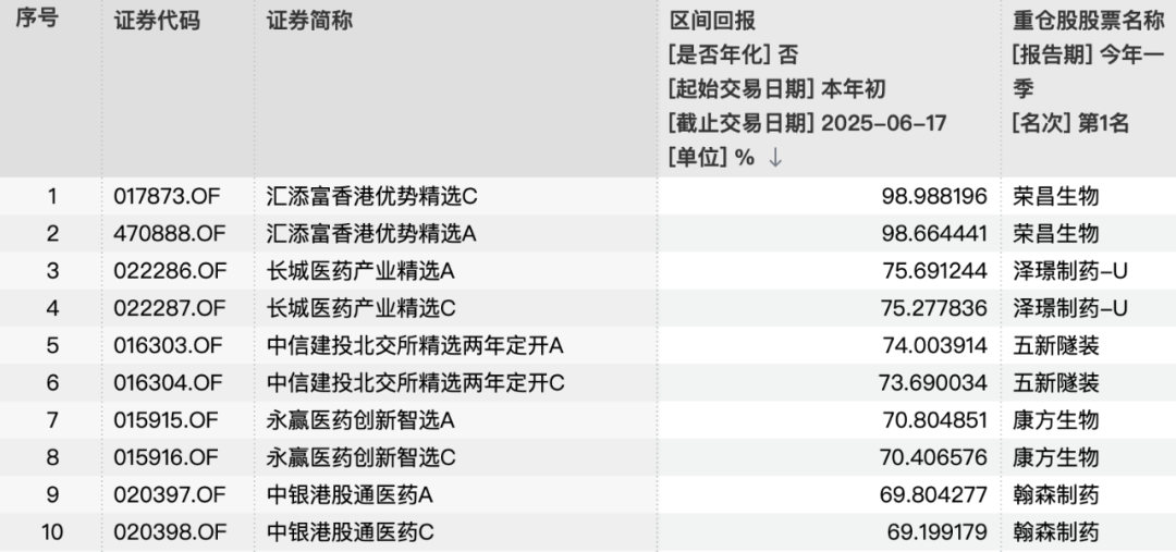 近期,港股医疗、科技、消费、红利、金融板块持续走高,形成港股“五朵金花”格局。同时,恒生沪深港通AH股溢价指数创出近五年新低,反映出H股相对A股的折价大幅收窄,部分龙头股甚至出现H股溢价。 为何这五大板块表现亮眼?港股“五朵金花”成色如何?背后是价值回归还是资金博弈?未来行情是否具有持续性?围绕这些问题,中国证券报记者采访了多位机构人士。 资金捧出港股“五朵金花” Wind数据显示,截至6月17日,今年以来南向资金累计净买入港股逾6900亿港元,超过2024年全年南向资金净买入8079亿港元的85%。从细分领域来看,医疗、科技、消费、红利和金融板块涨幅居前,形成港股“五朵金花”格局。 从ETF产品来看,据Wind统计,从今年年初至6月17日,全市场涨幅前15名的ETF均为港股医药主题,区间涨幅均超40%;黄金主题ETF居涨幅榜第二梯队;第三梯队是多只港股通科技ETF和港股通互联网ETF,区间涨幅超过25%;港股金融ETF和港股非银ETF均涨超20%,并在近日创历史新高,香港证券ETF涨超15%,也在历史高点附近;多只港股消费主题ETF涨幅在20%左右;多只港股红利主题ETF涨幅也在15%以上。 ![]() ETF区间涨幅排名数据来源:Wind 值得一提的是,随着大批优质公司赴港IPO,新消费、AI科技、创新药等经济结构性亮点在港受到资金追捧,香港交易所业绩大幅提升,今年一季度收入和净利润均创历季新高。作为相关指数的重要权重股,香港交易所今年以来的股价涨幅在40%左右,拉动了港股金融ETF和港股非银ETF等产品上涨。 在主动型公募基金产品中,含“港”量成为决定业绩的“胜负手”。今年以来,业绩亮眼的基金多数重仓了港股创新药股票。据Wind统计,从今年年初至6月17日,张韡管理的汇添富香港优势精选A/C区间回报率超过98%,名列前茅,截至一季度末,该基金重仓股几乎全部为港股创新药股票;永赢医药创新智选A/C、中银港股通医药A/C的区间回报在70%左右。 ![]() 基金区间回报排名来源:Wind 此外,随着泡泡玛特、老铺黄金股价的持续走高,重仓港股新消费股票的基金表现不俗。同在上述时间段,吴远怡管理的广发成长领航一年持有A/C的区间回报率均超60%,信澳优享生活A/C、南方香港成长的区间回报率均超40%。 透视港股“五朵金花”成色 为何这五大板块能够“跑出来”?成色如何? “如果仔细分析,引领港股‘五朵金花’上涨的原因存在显著差异。”格林基金总经理助理、权益投资总监、基金经理郑中华对中国证券报记者表示,“大致可以划分成三种不同类型。” 第一类是以业绩作为主驱动力的戴维斯双击,主要包含科技和消费。在科技方面,全球AI产业爆发带动AI基建(如算力)和下游应用业绩增长,驱动股价上行。在消费方面,与悦己经济(潮玩、美妆)和贵金属相关的新消费产业显著上行,契合中国人口结构和生活习惯变迁,以及文化自信的增强。 第二类是以估值作为主驱动力的戴维斯双击,主要包含医疗。以创新药为代表的港股医药板块上涨主要动力是业绩好转、政策优化、估值低位。国内创新药企业经过多年积累,逐步进入成果转化期,稳定的盈利展望是医药行业中长期股价上行的核心决定因素。 第三类是以估值修复为主的股价上行,主要包含红利和金融。大部分红利与金融行业的业绩未显著上行,股价上涨主要源于“A股映射”带来的估值修复,背后是险资等中长期资金在权益市场需要选取低波、稳定收益品种。红利及金融板块因盈利展望稳定、股息率高于债券等特点,成为这类资金的投资首选。