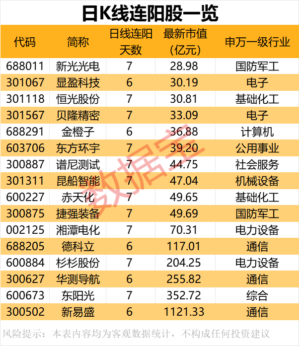 台基股份实控人变更为湖北国资委 6月19日晚间,台基股份(300046)公告,公司实际控制人邢雁及其他29名自然人向长江产业投资集团有限公司(以下简称“长江产业集团”)转让襄阳新仪元半导体有限责任公司(以下简称“新仪元”)576.75万股股权(占新仪元股权比例为32.03%),并将其持有剩余新仪元1148.5万股股权(占新仪元股权比例为63.79%)对应的表决权在表决权委托期限内独家、无偿、不可撤销地委托给长江产业集团行使,同时将其持有的剩余新仪元1148.5万股股权(占新仪元股权比例为63.79%)质押给长江产业集团。 本次权益变动完成后,长江产业集团成为新仪元的控股股东,从而取得公司控制权,成为公司间接控股股东。新仪元持有的公司股份数量不变,公司控股股东仍为新仪元。公司实际控制人由邢雁变更为湖北省国资委。公司股票自2025年6月20日开市起复牌。 长江产业集团是湖北省第二批新组建的省属国企,于2022年成立。集团注册资本336亿元,资产总额2509亿元,旗下认缴基金规模超7000亿元,拥有实控二级子公司25家,其中,控股广济药业、万润科技、双环科技、奥特佳、凯龙股份5家上市公司,战略性投资长江存储、大冶有色、长江证券等重要企业。 台基股份主营功率半导体器件,拥有完整的大功率半导体器件生产线,产能规模强大,是国内大功率半导体器件主要提供者之一。产品广泛应用于工业变频器、电机驱动、高功率电源、数字能源、智能电网、轨道交通、新能源等电气系统和工控设备领域。 ![]() 16股日K线连阳 昨日(6月19日),上证指数走出实体阴线,在市场整体回落的背景下,一些个股却逆势走出K线连阳的态势,展现出较强的抗跌性。如CPO概念龙头新易盛,昨日股价盘中创历史新高,日K线已连续6连阳,最新收盘价较4月低点的涨幅已超140%。 ![]() 业内人士称,连阳股反映出多头资金持续介入、股价重心上移的积极信号,在市场分化时,这类股票易成资金聚焦的结构性机会标的。 据证券时报数据宝统计,截至昨日收盘,剔除ST股和北交所个股后,有16股日K线连阳天数在6天及以上。 从市值分布来看,新光光电、显盈科技、恒光股份等11股最新市值低于100亿元,其中东方环宇最新滚动市盈率不足20倍。 东方环宇主营业务包括供热、天然气销售、天然气设施设备安装等,一季度实现归母净利润约8122万元,同比增长11.69%。 有分析人士指出,公司近日股价表现强势,或与原油期货价格大涨相关,这一趋势可能推动天然气价格上行,进而对其盈利能力起到提升作用。 值得关注的是,东方环宇近三年年度现金分红比例均超85%,一季度末获公募基金和保险机构持股数量占其流通股的比例分别达2.26%和3.67%。 ![]() 通信行业个股相对较多 从上述16股的申万一级行业分布来看,通信行业个股相对较多。 长江证券表示,AI与算力主线景气延续,持续驱动数据中通信需求上行,当前板块估值仍处低位,具备较高配置性价比。 华泰证券表示,近期海外AI建设正加速推进,训推逻辑均有得到验证,建议关注海外配套产业链机遇,板块包括光模块、铜连接、AIDC等。 具体来看,德科立、华测导航、新易盛3只通信行业个股日K线6连阳。其中,华测导航、新易盛均获15家以上机构积极型评级(含“买入”和“增持”评级)。 华测导航聚焦于高精度导航定位相关的核心技术及其产品与解决方案的研发、制造、集成和产业化应用,获18家机构积极型评级,机构一致预测今年营收增长率达27.99%,一季度末获公募基金和保险机构持股数量占其流通股的比例分别达6.26%和2.77%。公司近年股价表现亮眼,年K线已三连阳。 中信建投证券指出,华测导航积极寻求海外业务发展机会,在海外建立了强大的经销商网络,海外市场空间广阔且公司具备明显优势,公司海外业务有望持续快速增长。 ![]() 据数据宝统计,截至6月19日,在上述16股中,新易盛、金橙子、德科立年内均获龙虎榜机构席位净买入超8000万元。 新易盛年内获龙虎榜机构席位净买入金额达1.56亿元,居首。公司获22家机构积极看好,一致预测其2025年营收增长率达102.22%。值得关注的是,新易盛2024年也获龙虎榜机构席位净买入999.53万元。 金橙子年内获龙虎榜机构席位净买入金额达1.05亿元,居次席,年内股价大涨87.38%。公司主要产品包括激光加工控制系统、激光系统集成硬件、激光精密加工设备等,一季度末获QFII新进持股数量占流通股的比例达2.72%。 ![]() (文章来源:证券时报网) |