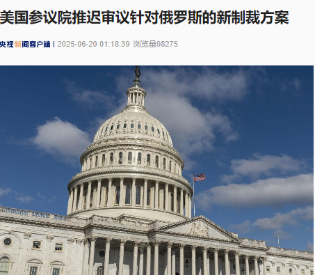 当地时间6月19日,美国国会参议院推迟审议针对俄罗斯的新制裁方案。图片来源:央视新闻 16日,美国总统特朗普表示,美国将暂缓对俄罗斯实施制裁,以期达成协议。 当地时间6月19日,俄罗斯联邦储蓄银行董事 ...