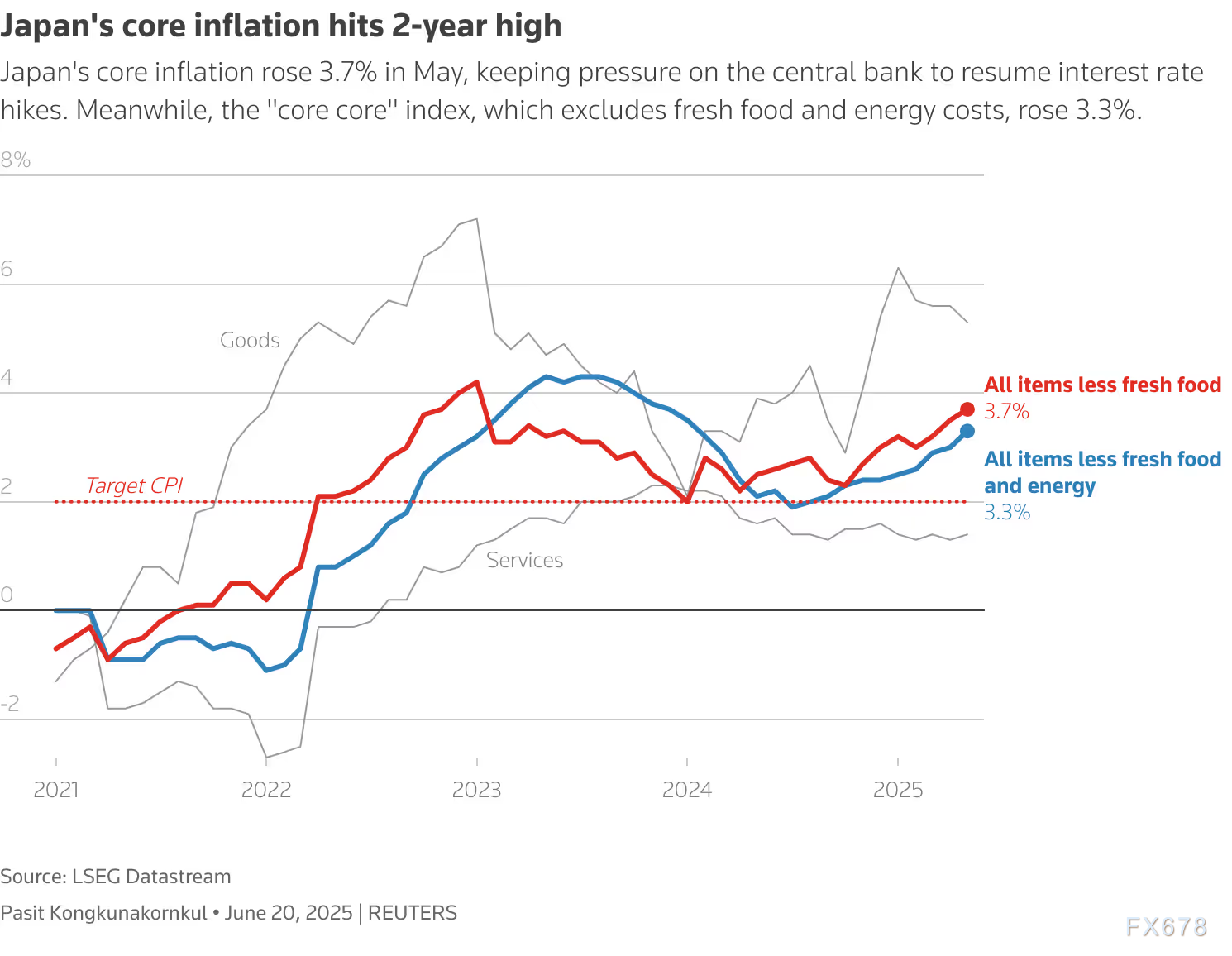 日本经济正站在一个关键的十字路口。周五(6月20日),日本公布的5月核心消费者物价指数(CPI)数据揭示了一个令人瞩目的现实:核心通胀率创下逾两年新高,达到3.7%,不仅超出了市场预期的3.6%,也远高于日本央行2%的目标。这一数据引发了市场对日本央行加息政策的热烈讨论。与此同时,美国关税政策的不确定性和中东地缘政治紧张局势为日本经济蒙上了一层阴影,而日元的走势也因此备受关注。 ![]() 通胀数据亮眼:食品价格成为推手 核心CPI创两年新高 根据日本政府最新公布的数据,5月剔除波动较大的生鲜食品的核心CPI同比上涨3.7%,较4月的3.5%进一步加速,创下自2023年1月以来最大年增幅。这一数据不仅超出市场预期的3.6%,也标志着日本通胀率连续三年多高于日本央行2%的目标。食品价格的持续高企是推高通胀的主要因素,尤其是日本主食大米的价格在5月同比翻倍,给普通家庭的生活成本带来了显著压力。 核心-核心CPI反映需求驱动 更受日本央行关注的剔除生鲜食品和能源的核心-核心CPI同样表现强劲,5月同比上涨3.3%,高于4月的3.0%,创下2024年1月以来最大增幅。这一指标更能反映需求驱动的物价走势,显示出日本国内需求正在稳步回暖。服务业通胀率也从4月的1.3%小幅上升至5月的1.4%,表明企业正逐渐将劳动力成本转嫁给消费者,进一步推高了物价。 食品通胀的“痛点” 食品价格的上涨尤为引人注目。5月剔除生鲜食品的食品价格同比上涨7.7%,较4月的7.0%进一步攀升。这一涨幅直接反映了日本家庭生活成本的增加,尤其是大米等主食价格的暴涨,让普通消费者感受到了实实在在的经济压力。尽管如此,日本央行预计,这种成本推动型通胀将在今年晚些时候逐渐缓解,工资增长的预期也将为消费提供支撑,从而助力日本经济实现更可持续的2%通胀目标。 日本央行面临的双重挑战 食品通胀与美国关税的夹击 日本央行正面临前所未有的政策抉择。一方面,国内食品价格的持续上涨使得通胀压力居高不下;另一方面,美国关税政策的不确定性为日本脆弱的经济复苏带来了新的风险。瑞穗证券市场分析师Ryosuke Katagi指出,日本央行目前正采取观望态度,密切关注美国与日本的双边贸易谈判进展。然而,通胀数据的强劲表现,尤其是商品价格的快速上涨,表明加息的条件在2025年可能持续存在。 中东局势与油价波动 近期中东地区地缘政治紧张局势的升级为全球经济增添了新的不确定性。以色列与伊朗之间持续一周的空战导致油价飙升,这不仅加剧了通胀压力,也为日本央行的货币政策带来了新的挑战。农林中金总合研究所首席研究员南武志表示,政府为抑制汽油价格上涨而提供的补贴可能在一定程度上缓解油价飙升的影响,但中东冲突的持续升级仍可能推高能源成本,进而影响物价稳定。 国内劳动力短缺的潜在影响 南武志进一步指出,日本央行还需权衡特朗普政府关税政策对出口的冲击,以及国内劳动力短缺可能推动的工资上涨压力。随着企业提高价格和工资的意愿增强,通胀率可能超出日本央行的预期。然而,廉价的亚洲大国进口商品可能对物价形成一定压制,这使得央行内部对未来通胀路径的看法出现分歧。 日元走势与避险需求 日元获得支撑 在全球经济不确定性加剧的背景下,传统避险资产日元获得了一些支撑。美元兑日元在周五亚洲市场小幅走弱,一度下跌0.22%至145.12,目前交投于145.28附近。支撑日元上涨的因素包括日本通胀数据超预期,市场对日本央行加息的预期持续升温。此外,日本央行近期政策会议记录显示,决策者一致认为有必要继续提高仍处于极低水平的利率,这进一步增强了市场对日元的信心。 全球经济背景下的日元表现 盛宝银行首席投资策略师Charu Chanana指出,油价上涨为全球央行带来了新的通胀不确定性,而大多数央行目前更倾向于优先支持经济增长,而非立即收紧政策以抑制通胀。在这一背景下,日元作为避险资产的吸引力有所增强,但其走势仍受到美元强势和全球经济波动的影响。 短期来看,日元在避险需求的推动下可能继续获得一定支撑,尤其是中东局势和油价波动加剧了市场的不确定性。然而,美元的强势和美国关税政策的影响可能对日元形成一定压制。长期来看,如果日本央行在2025年逐步加息,日元可能迎来更强的升值动力,但具体走势仍需视全球经济环境和央行政策的实际进展而定。投资者应密切关注日本央行的政策动向以及全球地缘政治局势的变化,以把握日元的投资机会。 北京时间11:41,美元兑日元现报145.26/28。 ![]() |