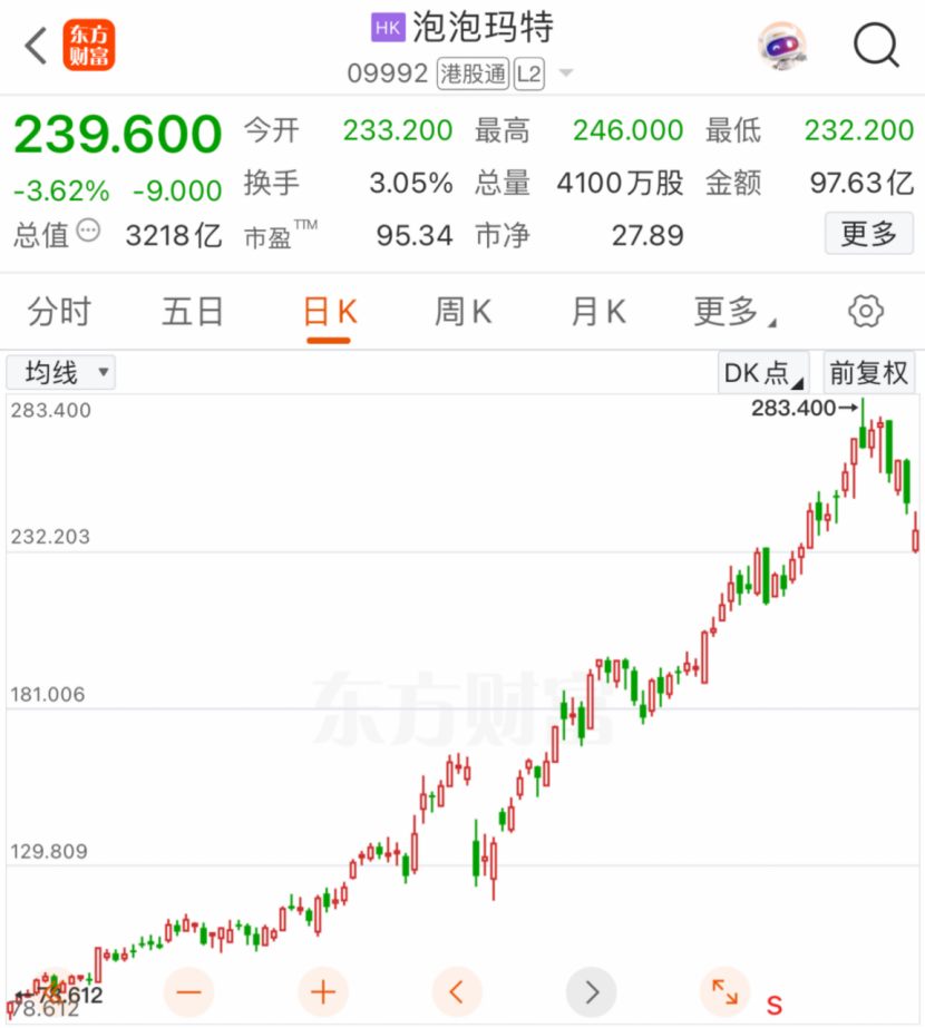 泡泡玛特有没有“泡沫”? 新消费赛道“总龙头”泡泡玛特本周遭遇猛烈抛售,周跌幅超12%。有分析称,其股价大跌的主要原因是顶流IP——Labubu二手交易价格暴跌、估值过高以及短线资金获利兑现等。 目前投资者较为关注的话题是,泡泡玛特股价的这一波大跌是“泡沫”破裂还是上涨途中的正常回调?新消费赛道后续将如何演绎? 有机构分析称,尽管泡泡玛特的优质IP、强大的品牌影响力和市场份额对股价有一定的利好推动,但当前过高的估值仍可能使其面临回调风险。但也有华尔街机构看好泡泡玛特未来的发展前景。摩根大通6月19日将泡泡玛特的目标价由250港元/股上调至330港元/股,并将该股列入其“积极催化剂观察名单”。 泡泡玛特大跌 本周,超级大牛股泡泡玛特股价连续遭遇大跌,周五盘中,一度大跌超6%,截至收盘,跌幅收窄至3.62%,报239.6港元,创下6月3日以来新低,单周累计跌幅达12.11%。 ![]() 拉长周期来看,泡泡玛特的最新收盘价相较于6月12日的最高点累计跌幅已达15.5%。 有分析指出,近期泡泡玛特股价的持续下跌与旗下顶流IP——Labubu二手交易价格暴跌、高估值以及短线资金获利兑现有关。 受泡泡玛特官方大量补货影响,Labubu在二手市场的交易价格暴跌。据潮玩二手交易软件“千岛”的数据,截至6月19日,“前方高能”系列隐藏款“本我”三日成交均价为2547.8元,较此前下跌45%;非隐藏款价格跌幅更大,以“爱”款为例,三日成交均价为206.83元,较此前暴跌54%。 自6月18日下午开始,泡泡玛特官方商城小程序多次弹出相关商品的补货通知,同时在天猫官方旗舰店、抖音潮玩直播间等也大量放货。有消息显示,泡泡玛特此次补货或将从6月18日起连续进行三天。 与此同时,华尔街投行们对泡泡玛特的态度也出现了分歧,有部分投行警告当前泡泡玛特的估值过高,股价或存在回调风险,Labubu价格的震荡反映出潮玩市场的脆弱性。截至6月20日收盘,泡泡玛特的市盈率(TTM)高达96.8倍。 另外,《人民日报》最新发布的调查报道《盲卡盲盒哪能“无拘无束”》指出,盲卡(盲盒与“谷子”的结合变种)正成为未成年人非理性消费的重灾区。以热门IP如《原神》《奥特曼》为核心的卡牌产品,凭借低价门槛(单价约20元)和社交属性,诱导青少年频繁消费。天津盈科律师事务所律师郭振杰表示,盲卡本是一种娱乐方式,若缺乏约束,可能演变成“收割”孩子钱包的工具。 后市如何演绎 作为新消费赛道的“总龙头”,泡泡玛特股价的这一波大跌,究竟是“泡沫”破裂还是上涨途中的正常回调?未来新消费赛道将如何演绎? 6月18日,摩根士丹利分析师将泡泡玛特股票从其重点关注的股票名单中剔除。这表明,该机构对于泡泡玛特的前景展望发生了重大转变。 而在一周前,摩根士丹利股票分析师Dustin Wei及其团队刚将泡泡玛特的目标价从224港元/股上调至302港元/股。 估值过高,或许是摩根士丹利对泡泡玛特态度转变的原因。Dustin Wei及其团队在此前发布的报告中表示:“尽管我们预计泡泡玛特具备长期增长空间,但鉴于其估值过高,预计未来几个季度泡泡玛特股价的优异表现不会持续下去。” 与此同时,晨星股票研究公司(Morningstar Equity Research)的分析师Jeff Zhang则在此前发布的报告中称,泡泡玛特股票“估值过高”。 Jeff Zhang认为,泡泡玛特应该获得“无护城河”评级,因为该公司的顶级知识产权(IP)“寿命较短”,在玩具以外领域获得的成功有限,以及与迪士尼等具备全球知识产权的运营商相比,定价权较弱。 Jeff Zhang称:“2024—2025年,我们仍能够看到泡泡玛特在全球范围内保持稳健增长,但从长期来看,如果它未能持续推出对粉丝群体有吸引力的新产品或新IP,那么我们可能会看到热度的衰退。” 粤开证券也认为,尽管泡泡玛特凭借优质的IP、强大的品牌影响力和不断拓展的市场份额,具备一定的价值支撑,但过高的估值仍可能使其面临回调风险。 对于新消费赛道,有外资机构认为,无论是从机构持仓比例、交易换手率,还是估值水平来看,当前都处在明显较高的位置。另从标的本身股价与市场反应的状态来看,需要警惕一些潜在风险。 杰富瑞(Jefferies)分析师Anne Ling则在报告中写道:“短期内,整个流行玩具板块的股价将面临压力,尤其是那些今年迄今表现优异的玩具股。” 尽管如此,仍有华尔街机构看好泡泡玛特未来的发展前景。 6月19日,摩根大通将泡泡玛特的目标价由250港元/股上调至330港元/股,评级为“增持”。 摩根大通称,对泡泡玛特旗下IP产品Labubu和Crybaby在全球范围内快速增长的品牌热度及消费者需求印象深刻。 摩根大通还将该股列入其“积极催化剂观察名单”,预计该公司2025年上半年利润将达到35亿元人民币,超过2024年全年利润,并重申,泡泡玛特是摩根大通中国消费品板块的首选股。 (文章来源:证券时报网) |