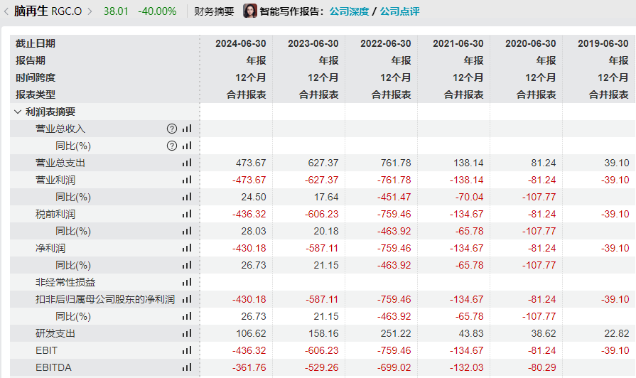 此前狂飙的脑再生科技股价突然大跌。 脑再生科技大跌40% 美东时间6月20日,脑再生科技盘中大幅下探。截至收盘,该股跌40%,股价报38.01美元/股,总市值为188亿美元(约合1349.82亿元人民币)。 此前有消息称,脑再生科技宣布其新一代神经调控芯片通过FDA临床试验审批,将与全球顶尖医疗机构梅奥诊所合作,开展面向全球约1000万患者市场的帕金森病治疗研究。该神经调控芯片技术,属于脑机接口领域的前沿方向。 相关消息引爆资本市场。6月16日,脑再生科技股价盘中最高涨幅超4倍,多次熔断,当日收盘大涨超283%。截至6月18日,脑再生科技股价年内大涨近500倍。 ![]() 然而,脑再生科技并未在官方渠道证实上述消息。公司近年来的研发投入规模有限且呈下降趋势,与高端芯片技术突破的说法难以匹配,股价应声下跌。 12名员工撑起千亿元市值 业绩连年亏损 公开资料显示,脑再生科技是一家早期生物科学公司,专注于研究、开发和商业化中药,用于治疗神经认知障碍和退化,特别是注意力缺陷多动障碍(ADHD)和自闭症谱系障碍(ASD)。 该公司于2014年在香港起步,主要运营及资产均在香港。截至2024年6月30日,脑再生科技在香港仅有12名员工。 脑再生科技创始人兼首席执行官Yat-Gai Au是投行出身,曾涉足房地产、科技和生物技术等领域。其自幼患有ADHD和ASD,接受中医治疗超过30年,这帮助改善了他的这两种症状。该中医疗法由其父亲Sik-Kee Au创立,脑再生科技中医研究的全部基础就是其父的中药配方,该配方同样治疗了许多患有这两种疾病的儿童。 不过,脑再生科技坦言,中医脑理论并未在中医一般文献或其他领域得到认可。 ![]() 图源:脑再生科技官网 另外值得注意的是,脑再生科技尚未从销售任何产品中获得任何收入。脑再生科技在2024财年的财报中表示:“我们尚未从任何中药候选配方中获得收入,也未申请任何监管部门的批准,也没有分销能力或经验,没有任何已授予的专利或正在申请的专利,并且可能永远不会盈利。” 业绩方面,脑再生科技一直处于亏损状态。 ![]() 截至今年一季度末,脑再生科技的第一大股东为Yat-Gai Au,持股占比为86.24%。 ![]() (文章来源:中国基金报) |