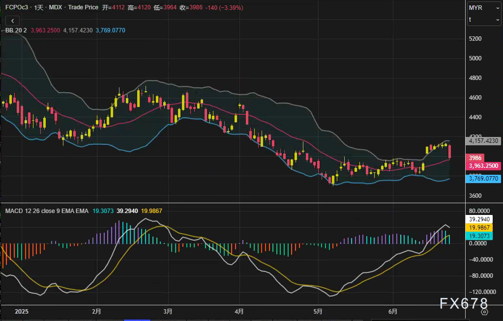 周二(6月24日),马来西亚衍生品交易所(BMD)棕榈油主力合约FCPOc3重挫3.39%,收报3986林吉特/吨(约合940.09美元),创下自4月4日以来最大单日跌幅。此前连续四日的反弹行情戛然而止,芝加哥豆油与原油价格同步走弱成为主要拖累因素。日线技术指标显示,布林带(20,2)三轨分别位于3963、4157和3769林吉特,MACD(12,26,9)柱状图收窄至19.99,短期动能明显减弱。 ![]() 1. 地缘风险溢价消退 中东局势缓和直接冲击植物油市场情绪。以色列接受特朗普提出的中东停火协议后,WTI原油价格跌至两周低点,削弱棕榈油作为生物柴油原料的吸引力。吉隆坡交易机构Iceberg X的自营交易员David Ng指出:"原油和芝加哥豆油的双双走低,直接触发了棕榈油的多头平仓。"数据显示,芝加哥豆油BOcv1下跌2.14%,大连商品交易所豆油DBYcv1和棕榈油DCPcv1合约分别下挫2.21%和2.14%。 2. 印尼出口疲软与印度需求隐忧 印尼棕榈油协会(GAPKI)最新数据显示,4月印尼棕榈油及精炼产品出口量同比下降18%至178万吨。与此同时,印度6月豆油进口量预计环比下降18%至四个月低点,主要因坎德拉港拥堵导致部分船货延迟至7月卸货。尽管这并非棕榈油直接数据,但反映出全球植物油进口需求的阶段性收缩。 3. 林吉特走强放大价格压力 马来西亚林吉特对美元汇率日内升值1.21%,使得以美元计价的棕榈油对海外买家更为昂贵。货币因素与商品基本面形成双重压制,进一步抑制市场买盘兴趣。 技术面:关键支撑面临考验 从日线结构观察,当前价格已跌破布林中轨(3963林吉特),短期支撑下移至3769林吉特附近。MACD快慢线虽维持金叉,但柱状图收缩显示上行动能衰减。新加坡某跨国贸易商技术团队认为:"若价格无法在三个交易日内重回4000林吉特关口,可能触发更深的回调至3750-3700区域。" 值得注意的是,知名机构分析师在盘中报告中提到,棕榈油与芝加哥豆油的价差仍处于历史均值下方,若豆油价格企稳,棕榈油或存在超跌修复机会。但这一观点的前提是"原油市场不再出现新一轮抛售"。 后市展望:波动率抬升下的多空博弈 短期来看,市场关注两大变量: 1. 中东停火协议的可持续性:若伊朗与以色列再生摩擦,可能通过原油渠道再度推高植物油溢价; 2. 美国生物燃料政策动向:EPA即将公布的2026年可再生燃料掺混义务(RVO)草案若提高生物柴油配额,或抵消部分利空。 中期而言,7-8月东南亚季节性增产周期与厄尔尼诺对单产的影响将形成多空拉锯。部分种植园公司透露,马来西亚半岛部分产区降水仍低于均值,这可能为三季度价格提供潜在支撑。但当前市场显然更关注即时需求的疲软信号,投资者需警惕库存重建节奏与预期差风险。 ![]() ![]() |