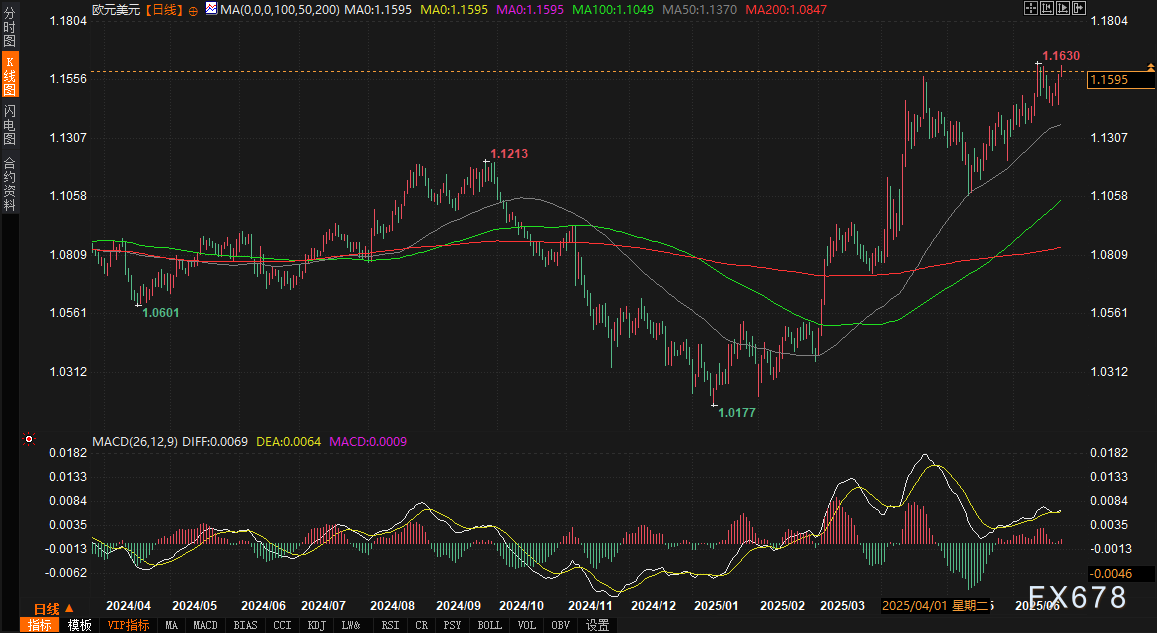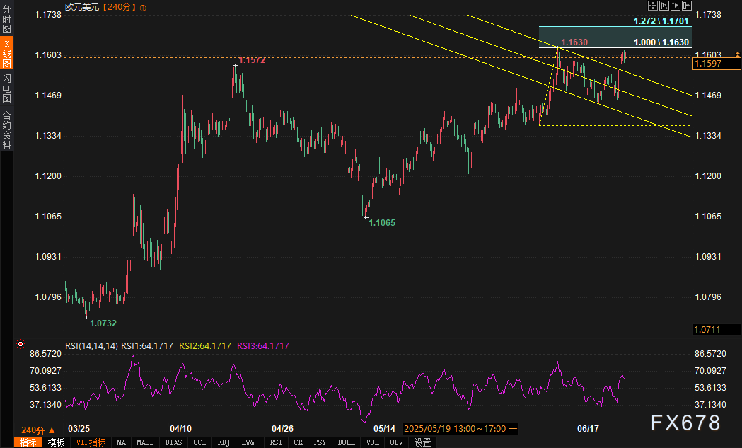 周二 6月24日 欧元兑美元延续隔夜涨势 亚欧时段交投于1 1595附近 日内涨幅0 16 汇价自周一低点反弹逾1 3 突破1 1540趋势线阻力后形成看涨旗形结构 技术目标指向1 1700关口 市场风险偏好回升叠加油价暴跌 共同 ...