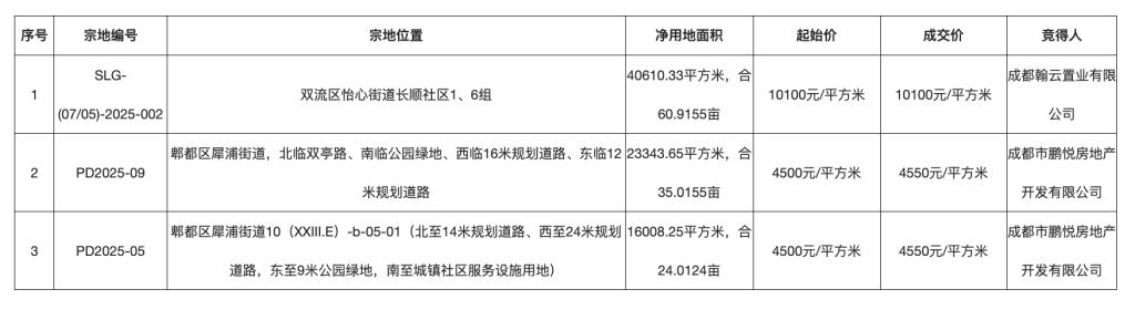 6月24日,成都再迎3宗涉宅用地出让,根据成交结果,3宗地块均成功出让,其中2宗低溢价、1宗底价,共计成交金额约10.89亿元。 此次出让的3宗地块分别位于双流区(1宗)、郫都区(2宗),总土地出让面积约120亩。据克而瑞四川监测,3宗地块均为板块年内首次供地。 ![]() 其中,双流区地块编号SLG-(07/05)-2025-002号,位于双流区怡心街道长顺社区1、6组,用地性质为二类城镇住宅用地、商业用地,土地出让面积40610.33平方米(合60.9155亩),规划建筑面积81220平方米。 该地块西至协和大道、南至长顺大道、东侧为蓝牌体育公园,属于华府板块,距离地铁19号线温家山站和地铁5号线二江寺站较近。 克而瑞四川数据显示,近一年来华府板块新房成交均价约为2.23万元/平方米,主力在售项目包括建发华润缦云、空港发展·云璟江屿、嘉禾滨湖颂和钟家湾TOD·半岛澜湾,产品面积在108-215平方米之间,普遍为改善定位。 根据成交结果,成都翰云置业有限公司以底价摘得该地块,成交楼面价10100元/平方米,折合总价约8.20亿元。 郫都区出让的两宗地块位置邻近。两宗地块均位于双亭路与汇科路交汇处南侧,均属郫都区红光板块,用地性质为二类城镇住宅用地。 其中编号PD2025-09号地块,位于郫都区犀浦街道,北临双亭路、南临公园绿地、西临16米规划道路、东临12米规划道路,土地出让面积23343.65平方米(合35.0155亩),规划建筑面积35015.47平方米,起始价1.58亿元。 编号PD2025-05号地块,位于郫都区犀浦街道10(XXIII.E)-b-05-01(北至14米规划道路、西至24米规划道路,东至9米公园绿地,南至城镇社区服务设施用地),土地出让面积16008.25平方米(合24.0124亩),规划建筑面积24012.37平方米,起始价1.08亿元。 根据成交结果,上述两宗地块均由成都市鹏悦房地产开发有限公司摘得,成交楼面价4550元/平方米,溢价率1.11%,共计成交金额约2.69亿元。 据机构监测数据,今年5月,红光板块新房成交均价约为1.18万元/平方米,主要在售项目有滨江玺樾、西宸春天等,产品面积在156-384平方米之间,产品形态包括高层和叠拼两种,覆盖一部分刚需和改善客群。 (文章来源:澎湃新闻) |