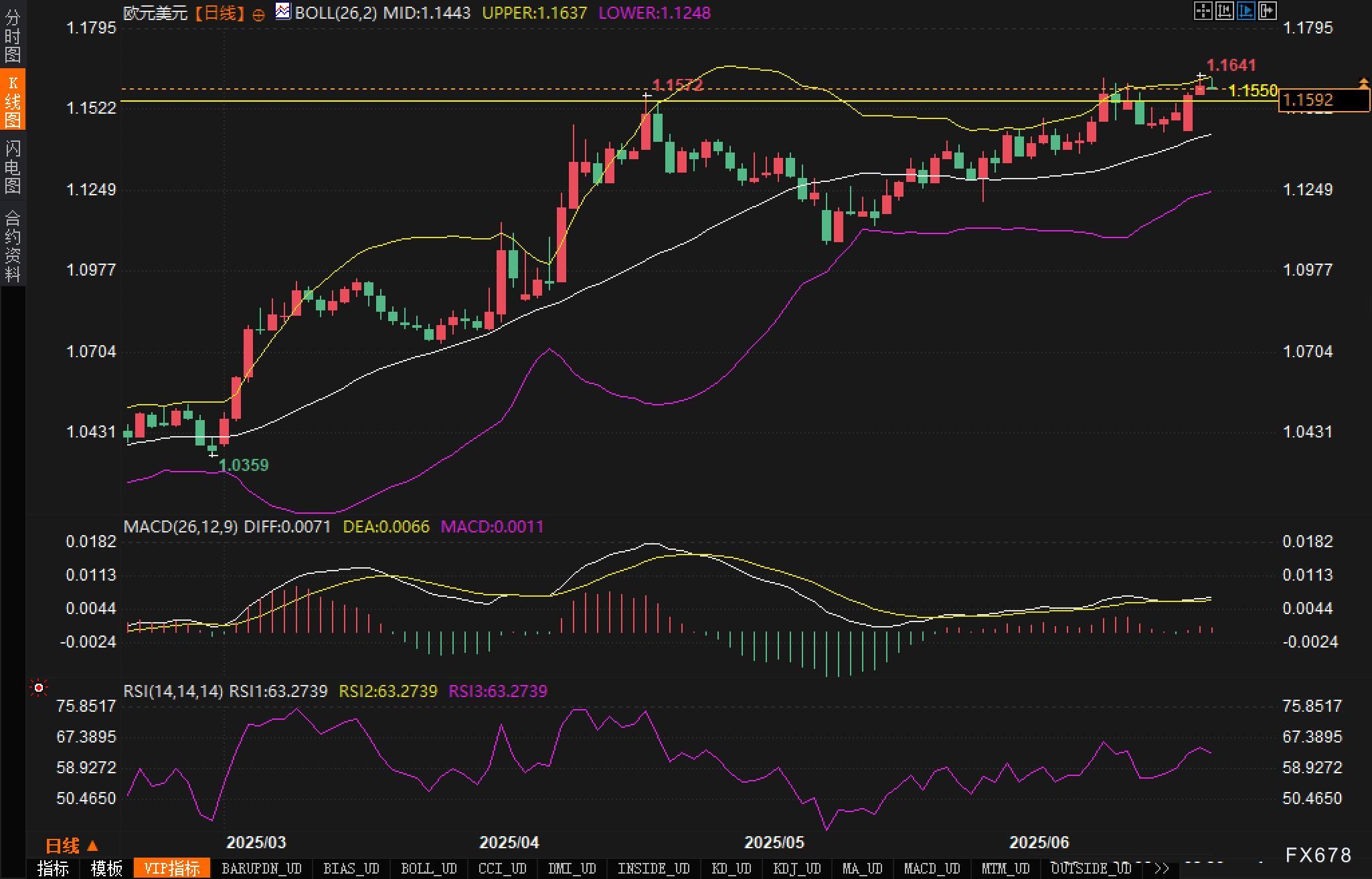 周三 6月25日 欧元兑美元 EUR USD 在连续两日强势上扬后略有回调 欧洲时段交投于1 16附近 接近2021年11月以来的高点1 1641 尽管以色列与伊朗之间的脆弱停火令风险偏好维持 美元依然承压 使欧元维持相对高位 基本面 ...