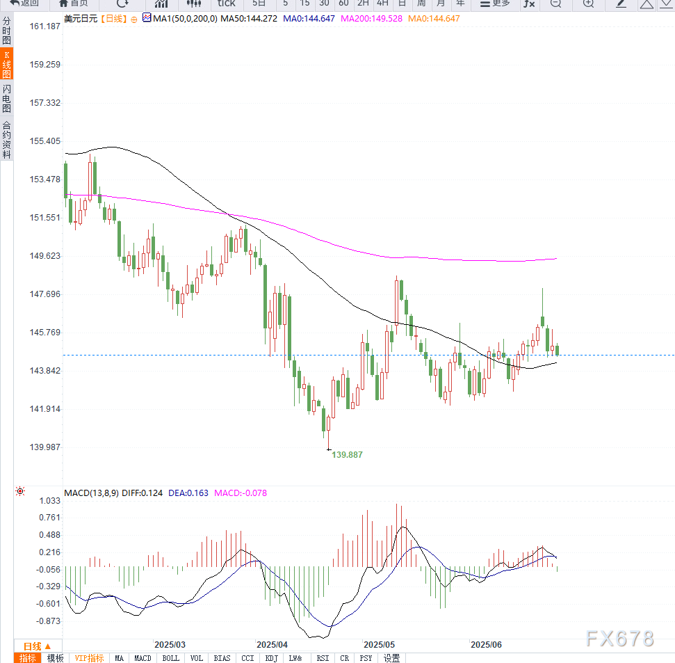 美元兑日元回落,日元受益于政策分歧与避险需求 ![]() 日本核心通胀已连续三年高于2%的目标,5月再次创下两年新高。企业服务价格指数(CSPI)同比增幅连续多月保持在3%以上。尽管日本央行仍保持谨慎基调,但市场愈发认为其将在未来数月再次加息。 “市场相信日本央行与美联储之间的政策分歧正在扩大,这是日元走强的核心因素。” 美联储政策信号混乱,美元跌至三年低点 美联储主席鲍威尔表示,尽管近期通胀回落,但新一轮关税政策仍可能抬升物价,政策将维持观望。但市场认为美联储年内将降息至少50个基点,甚至7月降息的概率也接近20%。这一前景进一步打压美元兑日元走势。 美元兑日元在146.00附近受阻后回落,并跌破4小时图200期均线(约144.70-144.65区域),这是空头的关键触发点。技术指标RSI与MACD均开始转向利空,若价格进一步跌破144整数关口,可能打开下行至143.65甚至143.00以下的空间。 反之,若回升至145上方,仍可能在145.25-145.35区间遭遇卖压,而146.00成为短线多空分界点。若突破该位,则可能重新测试146.65至147.50阻力区,甚至挑战148.00大关。 ![]() 当前市场对日美货币政策路径的分化预期日益扩大,构成日元走强的核心支撑。而特朗普对美联储的干预增加了政策不确定性,美元面临中期系统性压力。 若日本通胀数据继续走强,而美国PCE通胀数据不及预期,美元兑日元可能继续测试143甚至142下方区域,短线反弹空间或将受限。 ![]() |