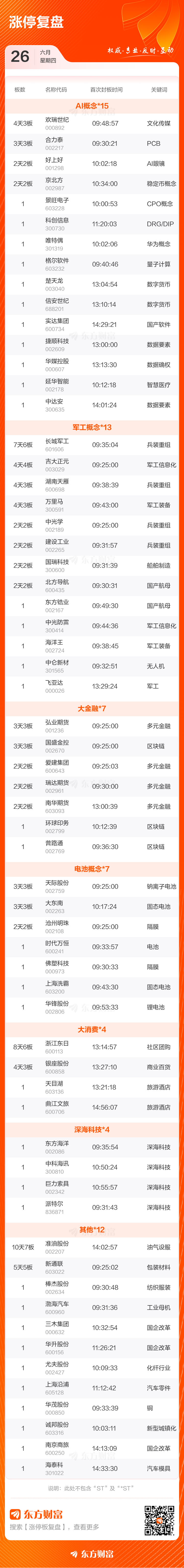 今天沪指跌0.22%,深成指跌0.48%,创业板指跌0.66%,今日大盘成交额1.58万亿,较上个交易日缩量196.11亿。 涨停个股数量方面,今日共计72股涨停,另有34只个股盘中一度触及涨停,封板率67.92%。 ![]() 个股方面 ![]() 免责声明:本文基于AI生产,仅供参考,不构成任何投资建议,据此操作风险自担。 (文章来源:东方财富研究中心) |