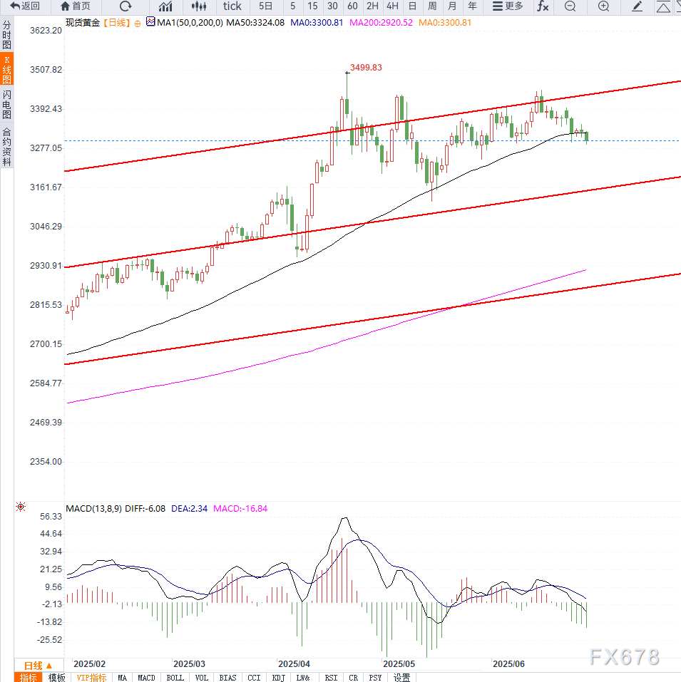 市场风险情绪上升,打压避险黄金需求 ![]() 美国商务部数据显示,今年第一季度GDP终值年化下滑至-0.5%,消费支出创2020年以来最慢增速。尽管首次申请失业金人数下降,但续请人数升至近四年来新高,显示就业市场复苏力度不足。市场因此预期美联储将在7月或年内降息至少50个基点。 周五即将公布的5月核心PCE物价指数预期环比上升0.1%,同比上升2.6%。若实际数据强于预期,可能支撑美联储维持观望立场并短期内延缓降息,从而暂时提振美元并打压金价。 美联储主席鲍威尔本周表示将在更好评估关税影响后再决定是否降息,引发特朗普强烈批评,并传出特朗普最快可能于9月前提名前任主席继任人选。这种政治干预迹象引发市场对美联储独立性的担忧,可能限制美元进一步走强。 技术图形上,金价跌破4小时图200期SMA与短期上升通道,暗示空头主导。若跌破3245美元支撑,或引发加速回撤至3210-3200区域,甚至测试3175关键支撑带。 上行方面,首个反弹阻力位于3324-3325美元,其次是3350前高和3370趋势线断点。只有当价格重新站上3400美元关口并突破前高,才可能扭转短线偏空格局。 ![]() 尽管金价短期承压并跌破3300美元,但根本驱动因素——即美国经济走弱、美联储政策不确定性及美元结构性走软——仍支撑中期看涨逻辑。 若PCE数据不及预期,黄金或迅速反弹,回测3350甚至3400关口。短期下跌更可能是技术调整,等待企稳为主。 ![]() |
