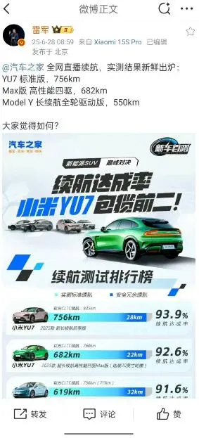 小米汽车深夜发文回应YU7交付规则。今日早间,小米汽车又称,昨天,小米门店迎来了首批试驾YU7的用户。 6月28日凌晨,小米汽车发文答网友问,其中针对“小米YU7是按什么顺序规则做交付?”、“小米YU7什么时候可以试驾?”等问题进行了回答,具体如下: ![]() 小米YU7是按什么顺序规则做交付? 所有的小米YU7订单将按照锁单先后顺序进行排产,同配置下先锁定的订单先排产。可以在犹豫期(7天)内可修改配置或取消订单,犹豫期结束后,订单将自动锁单,定金不退。 小米YU7什么时候可以试驾? 全国所有小米汽车门店现已开启试乘试驾服务。 ![]() 今日早间,小米创办人、董事长兼CEO雷军也在微博发布“YU7实测结果”。 ![]() 综合自小米汽车微博等 (文章来源:证券时报) |