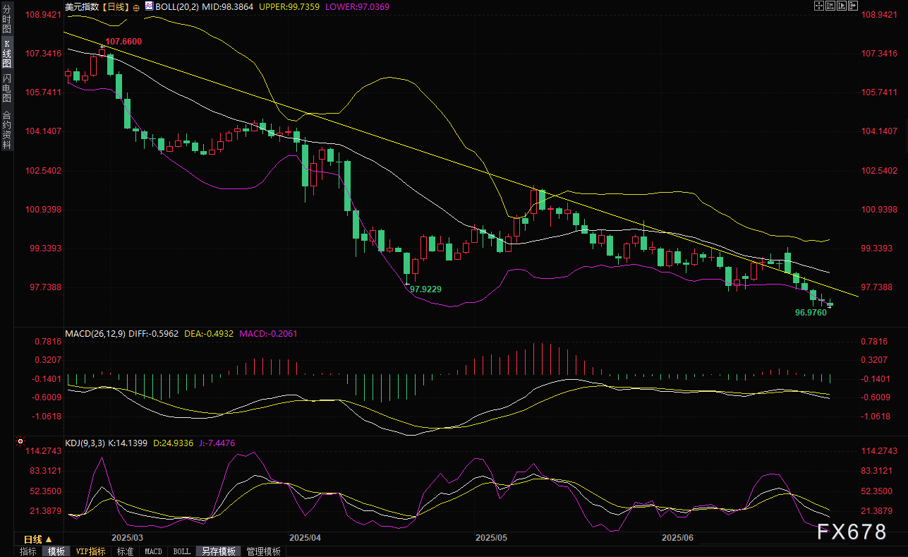 周一 6月30日 亚欧时段 美元兑欧元 英镑 瑞郎等主要货币徘徊在多年低点附近 市场对美国贸易协议的乐观情绪不断升温 叠加美联储降息预期的高涨以及特朗普对美联储主席鲍威尔的公开抨击 美元正面临多重压力 美元指数一 ...