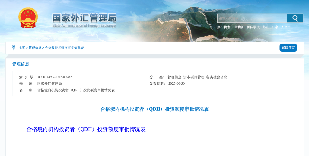 0时隔一年多后,新一轮QDII额度又一次集中获批。 6月30日,据国家外汇管理局披露的最新合格境内机构投资者(QDII)投资额度审批情况表,截至2025年6月末,累计批准额度由此前5月末时的1677.89亿美元提高至1708 ...