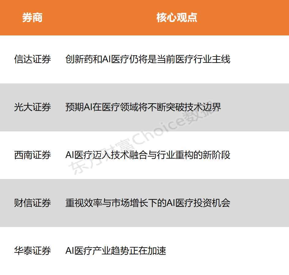 西南证券:AI医疗迈入技术融合与行业重构的新阶段 医疗机构掀起DeepSeek部署热潮,开启医疗智能化新路径。据统计,目前全国已有830+医院陆续完成DeepSeek-R1的本地化部署,推动医院数字化、智能化转型,应用场景包括监测医疗质量、优化医院资源调配、辅助诊断、保证数据安全等。国产大模型DeepSeek-R1的全面开源与多领域适配,标志着AI医疗迈入技术融合与行业重构的新阶段,关注AI医疗板块的加速发展与投资机会。 财信证券:重视效率与市场增长下的AI医疗投资机会 未来医疗行业有望依托企业技术平台化、AI诊疗拓展、消费医疗延伸突破等实现多维发展,行业将从规模扩张转向更高层次的发展阶段,看好行业高质量发展及长期投资机遇。DeepSeek等大模型不仅能提高医生诊疗效率和准确性,还能进一步优化医疗资源配置和提升患者就医体验。未来,随着人工智能技术的持续发展和群众医疗健康需求持续提升,AI医疗领域有望进一步扩容,建议关注国内AI医疗布局较早的龙头公司。 华泰证券:AI医疗产业趋势正在加速 AI正在构建医疗新范式,AI医疗2025年大有可为。2025年以来,全国百余家医院实现DeepSeek本地化部署,未来将加速在预问诊分诊、电子病历生成、病历质控、临床辅助决策、智能随访等多个场景落地AI应用。 (本文不构成任何投资建议,投资者据此操作,一切后果自负。市场有风险,投资需谨慎。) (文章来源:东方财富研究中心) |