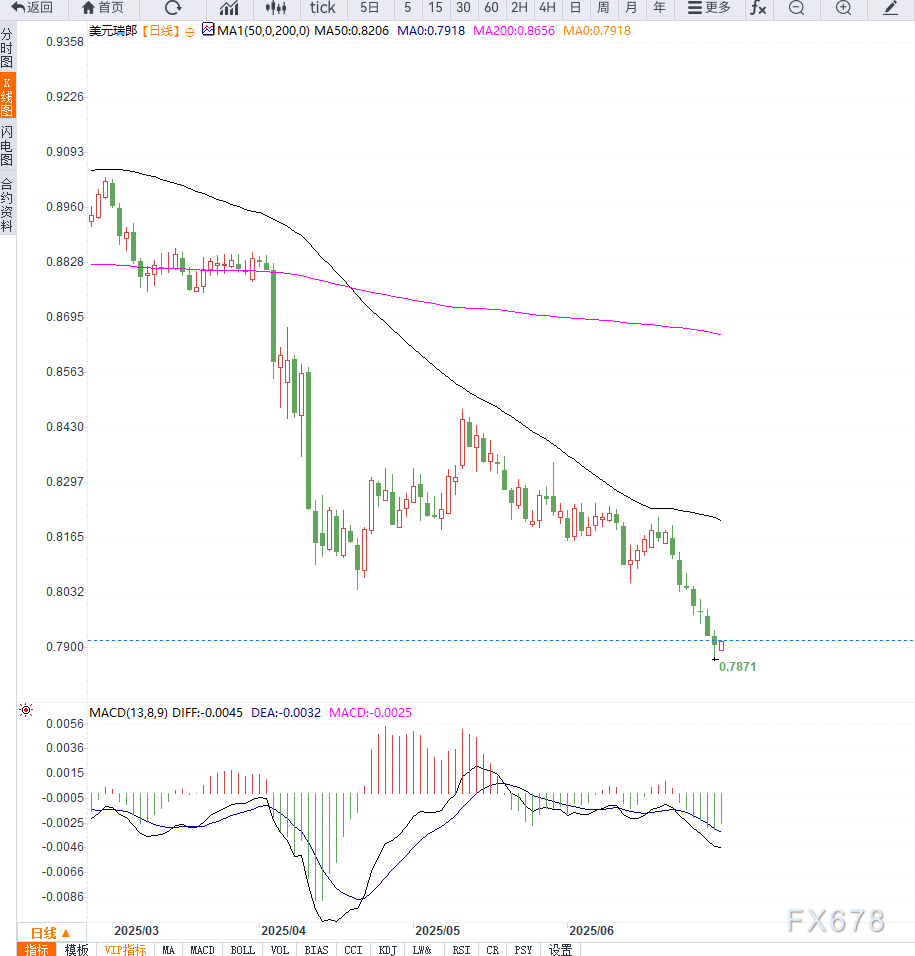 美元/瑞郎在本周三亚洲时段维持窄幅波动,交投于0.7900关口上方。前一交易日该货币对触及近14年低位后,市场情绪依然谨慎,市场等待即将公布的美国就业数据以寻求新的动能。 ![]() 市场分析指出:“美联储和瑞士央行货币政策分化使得美元/瑞郎的下行压力依旧存在,技术上仍未摆脱弱势结构。” 技术面来看,美元/瑞郎日线图显示弱势整理形态延续。目前该货币对处于2011年以来的低位区域,MACD指标持续在零轴下方运行,暗示空头仍占主导。 短期支撑位于0.7875,若跌破该位可能进一步测试0.7800整数关;上方阻力位关注0.7960至0.8000区域,反弹动能仍显不足。 即将公布的ADP私人部门就业报告,以及非农就业数据(NFP),将为市场提供关键指引,尤其是在利率政策预期不明朗的背景下。 ![]() 当前美元/瑞郎陷入“结构性利差收窄”困境,尤其在瑞士央行释放鹰派信号、美联储预期降息的情况下,美元难以维持中期强势。 若美国就业数据继续走弱,不排除美元/瑞郎将刷新新低,甚至测试0.7800关口以下水平。从风险管理角度看,短线应关注0.7875支撑位是否失守,而中线可继续关注两国政策差异带来的趋势性机会。 ![]() |