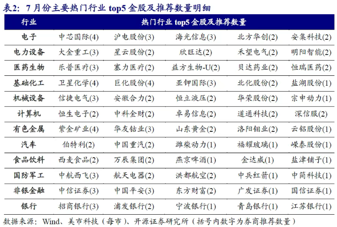 0下半年的首个交易月,各大券商更青睐A股哪些行业和标的? 整体来看,行业方面,电子、基础化工、医药等行业在7月金股中权重占比较大。权重增加最多的行业则是电子和电力设备等。 具体到个股方面,开源证券 ...