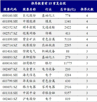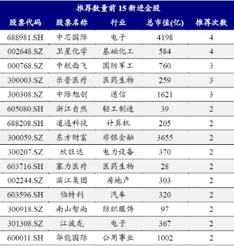 下半年的首个交易月,各大券商更青睐A股哪些行业和标的? 整体来看,行业方面,电子、基础化工、医药等行业在7月金股中权重占比较大。权重增加最多的行业则是电子和电力设备等。 具体到个股方面,开源证券研报数据显示,根据全市场42家券商发布的金股去重统计后,中芯国际(688981)、卫星化学(002648)、巨化股份(600160)、中煤能源(601898)、顺丰控股(002352)、恺英网络(002517)、紫金矿业(601899)、牧原股份(002714)等8只股票的热度并列第一,合计被各家券商7月金股推荐的次数最多。 “目前,市场上大部分的券商,在每月初都会披露十大金股,高度汇集并融合了风格选择、行业配置、选股择时等多维度观点。一定程度上,这体现了分析师的一致预期。”沪上某券商金融工程首席分析师对澎湃新闻记者说 电子板块最热,转向成长风格 行业方面,国信证券研报指出,在对券商金股股票池进行去重后,从绝对占比来看,券商7月金股在电子、机械、基础化工、医药、计算机等行业配置较高。 开源证券研报统计结果显示,7月券商金股权重最靠前的行业为电子,占比为12.8%;电力设备紧随其后,占比为7.7%;医药生物、基础化工位居其次,占比分别为7.4%、6.8%。 行业的权重增减方面,多家券商研报数据均显示,电子和电力设备是7月券商金股中权重增加相对明显的板块。 开源证券数据显示,相较6月份,7月券商金股增加最多的行业分别为电力设备、电子、计算机,增幅分别为4.1%、3.8%和1.9%。 国信证券研报数据指出,从相对变化来看,券商7月金股在电子、电力设备及新能源、国防军工等行业的增配较多。 降幅方面,国信证券和开源证券数据均显示,7月券商金股对食品饮料板块的减配较多。 开源证券数据显示,7月金股中交通运输、美容护理、食品饮料的权重分别减少了2.2%、1.9%和1.9%;国信证券数据显示,医药、食品饮料、商贸零售分别减少了2.13%、1.76%和1.44%。 “7月份券商金股的市值水平上升,估值水平上升,或表明7月份券商金股转向成长风格。”开源证券称。 ![]() 中芯国际等8股热度居前 个股层面,开源证券数据显示,7月各家券商推荐的金股中,被推荐次数最靠前的是巨化股份(600160)、中煤能源(601898)、顺丰控股(002352)、恺英网络(002517)、紫金矿业(601899)、牧原股份(002714),合计被推荐次数均达4次。 信捷电气(603416)、亚钾国际(000893)、招商银行(600036)、大金重工(002487)、海光信息(688041)、华友钴业(603799)、格力电器(000651)、中国平安(601318)、沪电股份(002463)等紧随其后,合计均被推荐了3次。 ![]() 而在7月新进金股名单(相对于6月新进金股名单)中,中芯国际(688981)、卫星化学(002648)合计被推荐次数最高,均达到了4次。 中航西飞(000768)、乐普医疗(300003)、中际旭创(300308)等紧随其后,合计均被推荐了3次。 浙江自然(605080)、道通科技(688208)、东方财富(300059)、欣旺达(300207)、塞力医疗(603716)、滨江集团(002244)、伯特利(603596)、南山智尚(300918)、江波龙(301308)、华能国际(600011)等,合计均被推荐了2次。 ![]() 落实到各个热门行业方面,电子板块的最热金股为中芯国际,合计被推荐了4次。电力设备板块大金重工排名第一,合计被推荐了3次。医药生物板块最热的是乐普医疗,合计被推荐了3次。 基础化工板块卫星化学、巨化股份并列第一,合计均被推荐了4次;机械设备板块为信捷电气,合计被推荐了3次;计算机板块恒生电子、中科金财、卓易信息、道通科技、深信服等居前,合计均被推荐了2次;有色金属板块紫金矿业被推荐次数最多,合计被推荐了4次。 其他热门行业上,汽车板块伯特利、中国重汽等热度居前,食品饮料板块西麦食品、万辰集团等被推荐次数居前,国防军工板块中航西飞最被关注,非银金融板块中信证券、中国平安等热度并列第一,银行板块招商银行被推荐次数最多。 ![]() 市场人士称,在券商金股股票池中,如果前期市场的关注度相对较少,随着券商分析师将其推荐为金股,其获得的市场关注度将会明显提升。基于此,可寻找出市场前期关注度相对较少的券商金股。 “一定程度上,大部分券商在每月初披露的十大金股中体现了分析师的一致预期。同时,券商金股还兼具了量化分析系统吸收基本面研究的前瞻性。”不过,上述券商金融工程首席进一步指出,“随着市场对券商金股关注度的提升,投资者想在券商金股组合中获得更多超额收益,仍需要对券商金股进行进一步优选。”
