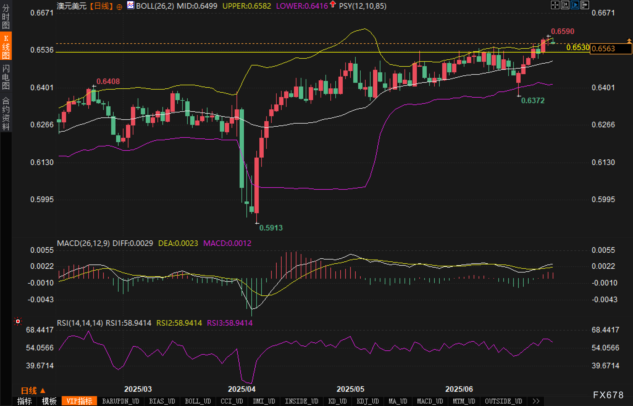 澳元/美元(AUD/USD)在触及年内高点0.6590后受阻回落,周三(7月2日)欧洲时段小幅承压至0.656附近整理。汇价回调的主要推手来自基本面与美元的联动波动:澳洲国内经济数据略显疲软,而美元指数小幅反弹,令汇价上行动能暂时受限。 ![]() 澳洲最新5月零售销售环比仅录得0.2%,虽高于4月的0%,但明显低于市场预期的0.4%,反映出消费复苏力度仍显不足。当前市场对澳洲联储(RBA)在7月再次降息的预期升温,对澳元构成一定拖累。 另一方面,美元在连续下跌后出现企稳迹象。不过美联储官员近期偏鸽派的言论,令美元反弹受限,也对澳元的下行空间形成牵制。利率方面,尽管联储主席鲍威尔暗示7月是否降息仍需数据验证,但市场仍将9月降息的概率计入逾75%。 地缘不确定性因素依旧存在,使得避险情绪在汇市中仍有一席之地,而澳元作为典型的风险货币,在市场情绪摇摆中走出涨后整理的技术格局。 技术面: 从AUD/USD日线图观察,汇价自低点0.5913一线反弹至今,整体构建出一个温和上升通道,并在近期成功突破布林带上轨压制,触及0.6590的年内新高,确认突破成立。 ![]() MACD快慢线在零轴上方维持平稳运行,红柱虽出现收窄迹象,但未出现明显拐头迹象,暗示汇价多头动能虽有减弱,但尚未结束。分析认为若后续MACD死叉,则需警惕汇价进入阶段性回调通道。 RSI(14)最新读数为58.94,维持在50上方但未进入超买区域,暗示汇价仍具备一定上行动能。分析认为若后续无法突破65水平,可能形成短期顶部背离,警惕短线涨势回吐。 市场情绪观察 当前市场处于利多与利空交织的状态。一方面,澳元受到RBA宽松预期与经济数据疲软的打压,另一方面,美元的反弹动能同样受限于降息预期。此背景下,汇价上行难以一蹴而就,但下行亦有底部买盘支撑。 从近期K线走势看,多头并未明显撤退,而是选择高位震荡蓄势。市场当前进入短线“情绪修正+趋势中继”的窗口期,交易员更偏向观察即将发布的ADP与非农数据,以判断是否开启新一轮趋势行情。 后市展望 短线来看,汇价连续拉升后技术面出现乏力迹象,MACD柱能减弱、RSI承压,显示出短期顶部构筑的可能性正在酝酿。分析认为一旦0.6530支撑失守,或引发进一步技术性回撤,目标关注布林中轨0.6499支撑线。 中期来看,自0.5913反弹以来的上涨趋势未被破坏,汇价依然运行于上升通道中,布林带通道张口、价格运行于中轨之上,均对多头构成结构性支撑。分析认为若后续宏观数据不出现重大利空干扰,汇价有望进一步挑战0.6590并上看0.6630附近。 整体而言分析认为,当前汇价处于短期整理阶段,但趋势结构仍支持中期多头延续,交易员密切关注本周非农数据后的市场反馈,以判断汇价是否有望形成上升趋势的再加速。 ![]() |