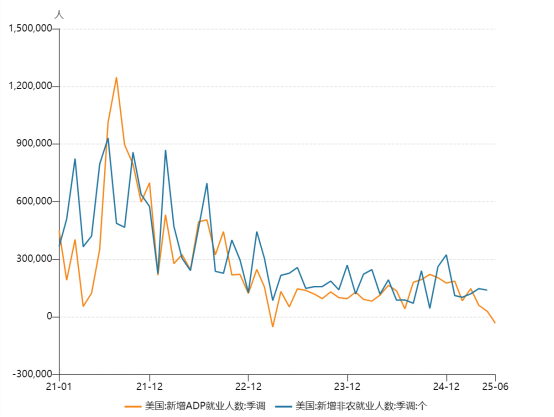 美联储或提前降息。 当地时间7月2日,美国最新发布的“小非农”ADP就业数据爆冷,为2023年3月以来的首次负增长。最新的就业数据显示,美国就业前景不容乐观。市场开始憧憬美联储将提前降息。 就业数据不乐观 ADP就业数据由ADP研究所与斯坦福数字经济实验室合作发布,主要关注美国私营部门的就业情况。6月数据显示,私营部门就业人数减少3.3万人,为2023年3月以来最大降幅,而预估为增加9.8万人。28位经济学家的预测区间从增加2万人到增加13万人不等。 数据还显示,商品生产类就业增加3.2万人,服务提供类就业减少6.6万人。其中,专业服务、教育及卫生服务以及金融服务业分别减少了5.6万人、5.2万人和1.4万人。 ADP报告和政府非农就业报告存在偏差,但这一低迷数字无疑强化了市场对劳动力市场疲软的担忧。6月非农就业报告将于本周四发布。从目前机构预测情况看,该数据并不乐观。 ![]() ADP就业人数和非农就业人数比较 瑞银和花旗的最新报告均预测,即将发布的6月非农就业数据将远低于预期,失业率或创2021年以来新高。而就业市场的疲软表现正成为推动美联储提前降息的关键因素。 瑞银在6月27日的研报中认为,6月非农就业人数将仅增加10万人,失业率将上升至4.3%,这将是2021年以来的最高水平。 花旗则在研报中预测,6月非农就业仅增加8.5万个岗位,失业率将升至4.4%,远低于市场普遍预期的11万个新增岗位。分析师指出,非农就业增长已连续数月放缓并遭遇大幅下修,这一趋势预计将在6月延续。招聘活动减少、失业救济申请增加等多重迹象,预示经济可能面临更大挑战。