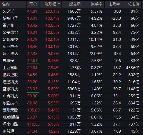 ![]() 消息面上,苹果的折叠iPhone已于6月进入P1原型开发阶段,后续会有P2和P3阶段,每个原型阶段通常持续大约两个月。预计2025年底有机会走完Prototype的开发流程,2026年下半年有望上市。 中信证券指出,持续看好电子板块未来一个季度的超额收益潜力。往下半年看,电子行业双轮成长格局逐渐清晰,国内自主可控进程加速推进,叠加泛工业领域需求持续旺盛,行业景气周期有望延续至三季度,预计消费电子领域也将迎来重要时间窗口。 西测测试“垂直”20%涨停 商业航天概念股强势拉升, 开盘不到1分钟, 西测测试直线冲上 20%涨停板。截至发稿, 雷科防务 、 上海沪工 、 巨力索具等亦涨停, 陕西华达涨超8%。