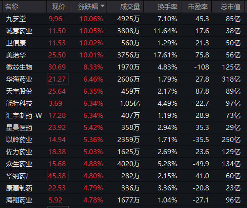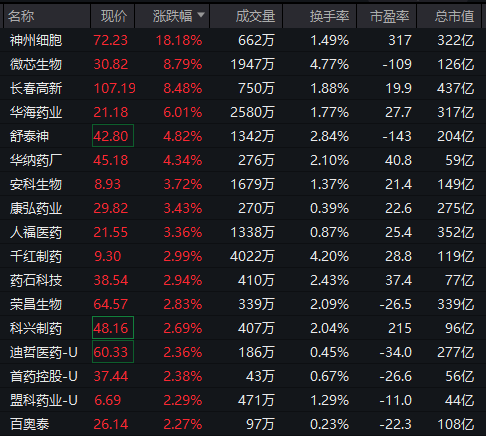 【导读】创新药概念股再度活跃,电子元器件、商业航天板块多股涨停, 西测测试开盘不到1分钟,“垂直”20%涨停 一起来看下最新的市场情况及资讯。 7月3日早盘,A股三大指数涨跌不一。截至发稿,沪指跌0.21%,深成指涨0.32%,创业板指涨0.78%。 ![]() 板块方面,创新药概念股再度活跃,消费电子概念股强势走高,电子元器件板块多股涨停,而锂电、煤炭、多元金融等板块震荡调整。 港股方面,三大指数悉数下跌,金山软件、阿里巴巴、小米集团等跌幅居前。 ![]() ![]() 创新药概念股再度活跃 创新药概念股再度活跃,神州细胞涨超18%,微芯生物、长春高新涨超8%,华海药业涨超6%。 ![]() 生物科技、制药板块强势拉升,九芝堂、诚意药业、卫信康等多股涨停。 ![]() 近日国家医保局、国家卫生健康委联合印发《支持创新药高质量发展的若干措施》(以下简称《若干措施》),提出5方面16条措施,强调对创新药研发、准入、入院使用和多元支付进行全链条支持。 中信建投证券表示,《若干措施》的出台将对创新药产业高质量发展发挥重要作用,有助于构建以临床价值为导向的创新药研发新局面,提高创新药多元支付能力和可及性,有望进一步提升创新药的市场空间。 电子元器件板块多股涨停 消费电子板块震荡走强,工业富联涨超8%,歌尔股份、立讯精密、领益智造等涨幅居前。 ![]() 电子元器件概念股走高,久之洋20cm涨停,博敏电子、雪迪龙、金安国纪等多股涨停。