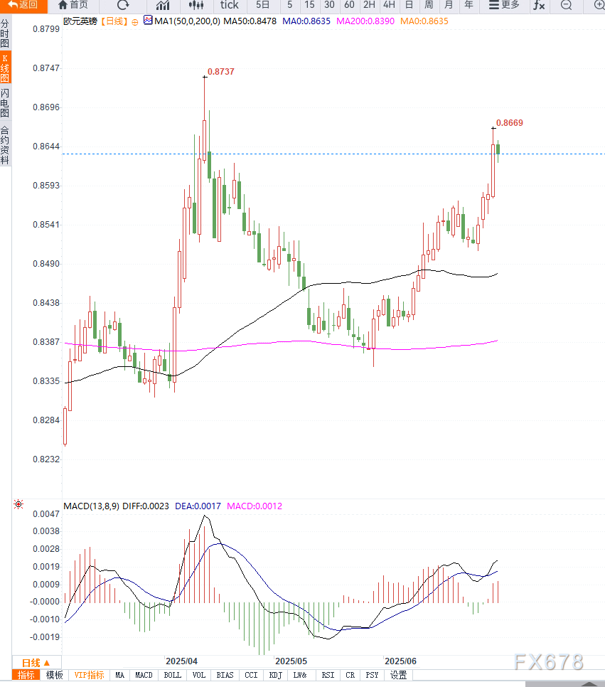 欧元兑英镑周四小幅下挫,交投于0.8650附近,较前一日回落0.20%。市场风险情绪波动、美欧关税谈判不确定性加剧欧元承压,而英镑则受到英国债券市场剧烈波动与财政前景质疑的双重牵制,导致EUR/GBP在短线回落后仍未大幅失守支撑位。 ![]() 一位欧洲政策观察人士表示:“贸易谈判不顺与不稳定的通胀预期正在削弱欧元区的外部信任。” 英镑方面,近期英国债市遭遇自2022年10月以来最大规模的抛售,引发市场对政府财政承诺的质疑。尤其在新一届工党政府上台后缩减福利削减计划,市场担忧其降低赤字的可信度受损,英镑遭遇投资者谨慎对待。 班诺克本环球外汇首席策略师Marc Chandler表示:“不仅英镑大幅下滑,英国国债也在遭遇严重抛售,反映出市场对工党政府财政计划的信心危机。” 英国债券收益率飙升,进一步打压英镑的吸引力,并限制了EUR/GBP的跌势。 技术面来看,EUR/GBP自0.8695高点回落,但仍维持在20日均线(0.8645)上方。若跌破0.8640~0.8630支撑区域,或触发技术性调整,下看0.8600整数位。 上行方面,短期阻力在0.8680与0.8700,突破后将再次挑战0.8740年内高点。RSI位于52附近,动能偏中性,显示汇价短期内以区间震荡为主,需等待数据或事件驱动形成突破。 ![]() 欧元兑英镑当前受制于双边政治经济风险的不对称交错。欧元受益于欧央行鹰鸽平衡策略,但面临美欧贸易谈判不确定性;英镑则在经济韧性与财政疑虑之间拉扯,国债市场动荡可能加剧政策压力。 短期关注英国与欧盟官方消息,以及服务业PMI与美欧协定进展作为方向性判断的关键线索。 ![]() |