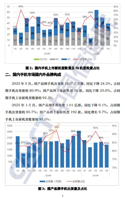 0中国信通院:2025年5月,国内市场手机出货量2371.6万部,同比下降21.8%,其中,5G手机2119.0万部,同比下降17.0%,占同期手机出货量的89.3%。 (文章来源:界面新闻) ...