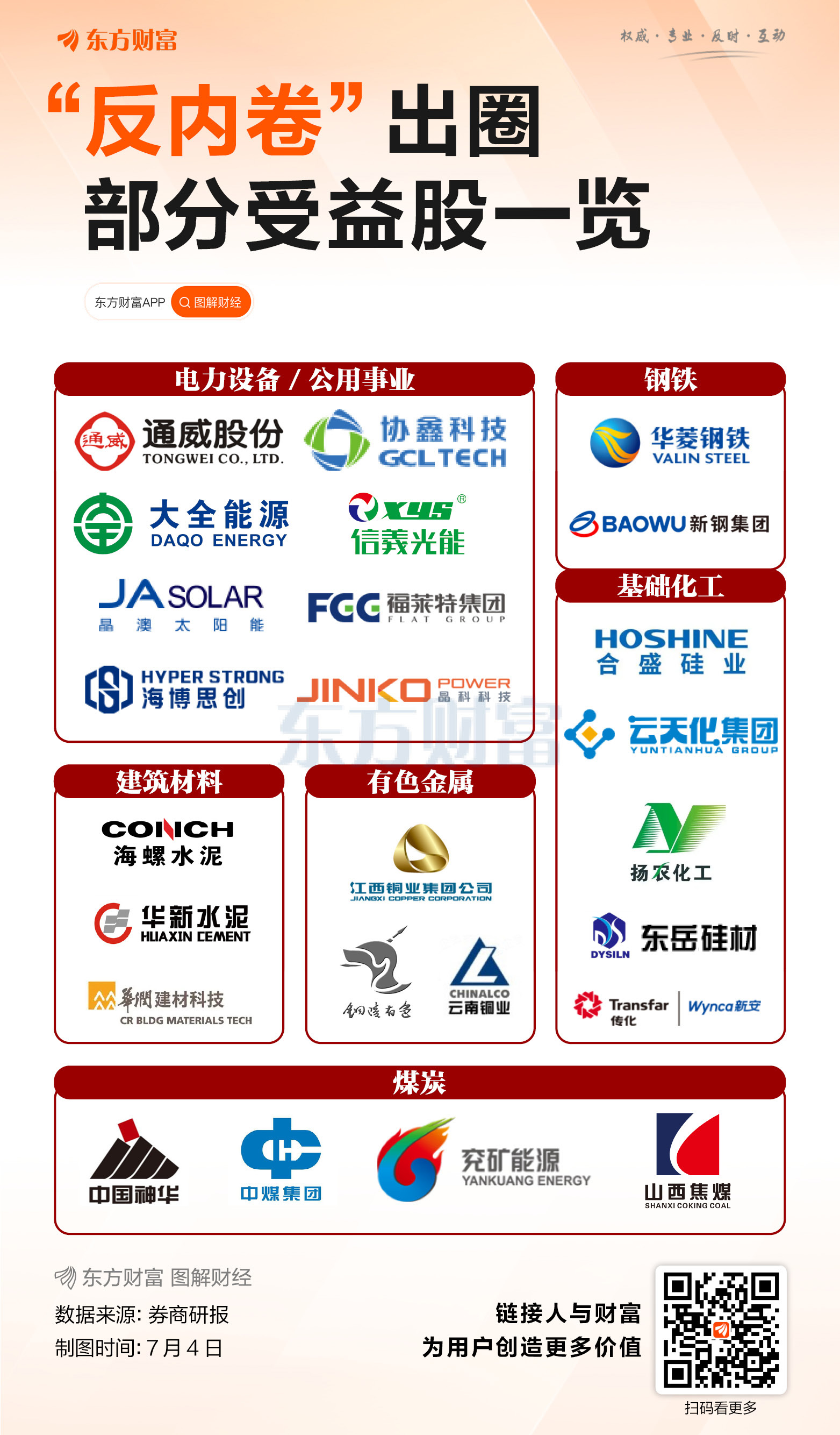 0日前,高层会议提出“依法依规治理企业低价无序竞争,推动落后产能有序退出”,“反内卷”预期强化,相关概念股近期表现较强。 政策发布后,各行业纷纷响应。头部光伏玻璃企业宣布自7月起集体减产30%,以缓解 ...