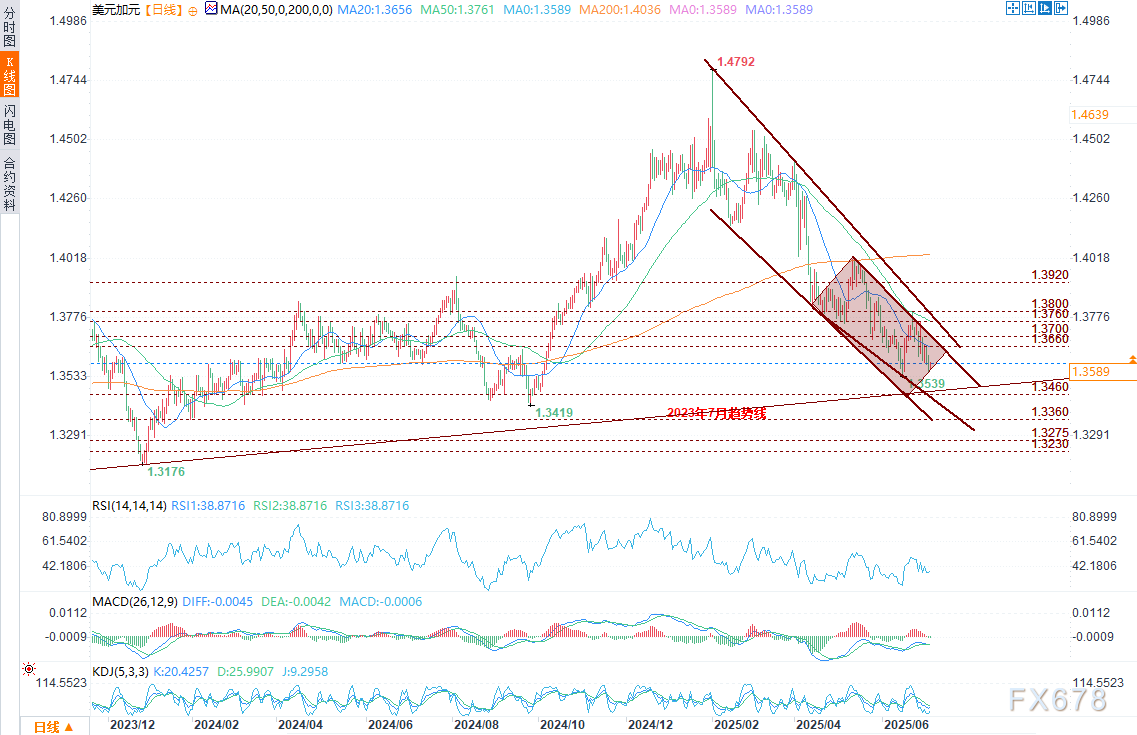 周五(7月4日),美元/加元欧洲市场交易中走低至1.3565附近后V形反转,交投于1.3590附近,持平于开盘价附近。虽然短时内美元/加元有所反弹,美元/加元仍面临抛售压力,美元回吐了昨日非农数据公布后的大部分涨幅。 ![]() 由于7月9日关税截止日期的不确定性,加元的表现逊于其他同行。加拿大经济尚未与美国敲定任何贸易协定,很可能从下周开始面临更高的关税。对全球贸易伙伴将于8月1日开始缴纳关税的担忧,在周五早间继续压制市场情绪,强化了短期看跌前景。 技术分析 ![]() 技术指标明确指向下方,预示着可能跌破6月低点1.3539,延续下行趋势。在这种情况下,2023年7月以来的暂定支撑线可能在1.3455附近发挥支撑作用。如果该水平失守,跌势可能加速向1.3355支撑区间靠近,该区间上次受到测试是在2024年1-2月。进一步下跌可能瞄准1.3230-1.3275区间。 上行方面,多头可能会在20日简单指数移动平均线(EMA)1.3660和心理关口1.3700之间遇到即时阻力。再往上,50日指数移动平均线和1.3800关口可能会限制上行势头,阻碍汇价迅速回升至1.3915。 总之,美元/加元目前的看跌阶段似乎还有更多下行空间,可能在1.3460附近形成新的低点。 ![]() |