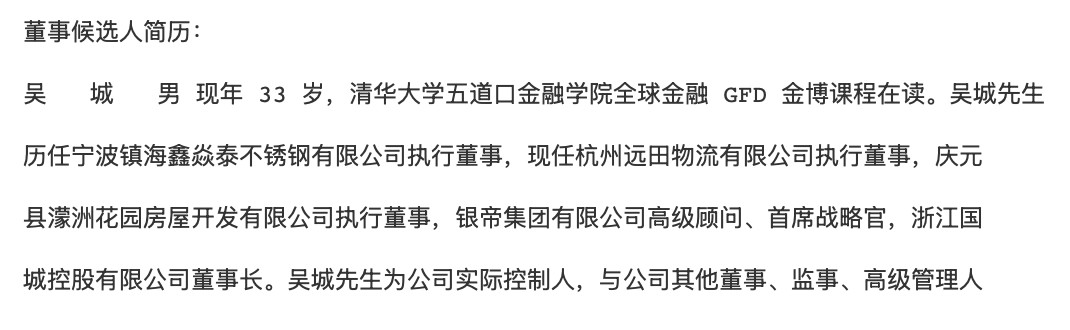 长袖善舞的“国城系”正面临关键一跃。 2024年12月18日,“国城系”旗下核心上市平台国城矿业披露重组预案,拟购买国城实业不低于60%股权。 国城实业旗下的大苏计钼矿等资源,使得此次交易对“国城系”颇为重要,不仅集团资产得以证券化,国城矿业也有望提升市值,化解控股股东高质押率问题。 然而,半年多时间过去了,国城矿业重组依然停留在“预案”阶段。 ![]() 作为A股近年来异军突起的一支“资本系”,“国城系”及其当家人吴城在短短数年间积累起巨额财富——国城矿业与众和股份合计市值超过300亿元,筹划装入国城矿业的国城实业估值超过50亿元。即便不考虑其他资产,“国城系”旗下资产已超过350亿元。 “这是一家激进的公司,胆子大。”一位接近“国城系”的知情人士告诉记者。 记者调查发现,“国城系”发家过程中,擅长运用杠杆资金,发家初期与兰州银行等往来甚密。 杠杆扩张的另一面是资金紧张。“国城系”对国城矿业的持股悉数质押,而收购国城实业也因此成为化解风险的“关键一招”。一旦市场预期落空,国城矿业股价或再度承压,超高的质押率恐引发连锁反应。 高杠杆入局A股 在A股初露锋芒,“国城系”就展现出高超的“财技”。 时间回拨到2017年,国城矿业(彼时名为建新矿业)控股股东建新集团向法院申请破产重整。2017年12月,建新集团重组方案出炉。国城控股注资50亿元,入主建新集团,从而间接获得建新矿业40.99%的股份。 ![]() 同时,国城控股以9.77元/股的价格,向除建新集团以外的其他股东发起全面要约收购,以此购得建新矿业32.99%股权。 数十亿元收购资金,仅有少部分是吴城自有。 2018年2月披露的要约收购报告书显示,吴城对国城控股实缴的20.725亿元中,有15亿元为浙商产融提供的借款。除此之外,赵俊、浙商产融及拉萨迪德共同向国城控股实缴了剩余的19.675亿元。 除此之外,浙商产融、宝信投资、耀莱投资、银帝集团还约定合计提供不超过46亿元资金支持。 ![]() 与彼时的吴城“低调”不同,愿意提供资金支持的4家资方均颇有实力。例如,银帝集团曾涉足地产、投资等多领域,吴城曾在该集团担任首席战略官。耀莱投资属于耀莱集团,后者掌舵人綦建虹身价一度超过百亿元。 ![]() 资金从何而来? 依靠外部力量入主国城矿业,是当时市场对吴城的主要印象。可如今回看,吴城对杠杆的使用力度或比预想的还要大。 在退市至三板的贵天成3披露的涉诉信息中,2017年5月27日,兰州银行向杭州木东、杭州荷修、杭州都昂分别发放了6亿元、2亿元、3亿元贷款。从公告来看,三笔贷款有着完全一致的担保方。而从工商登记信息来看,三家杭州公司均属于注册资本低、几无业务开展的“壳公司”。 记者获得的一份兰州银行的借款合同显示,兰州银行向杭州木东发放的6亿元贷款,用途一栏明确写着“用于建新集团重组”。 ![]() 如果上述资金确与彼时的建新集团重组有关,是哪家机构使用了该资金? 故事在这里还没有结束。 2020年12月,三维汇成从兰州银行受让了这三笔不良债权,并向相关方进行催收。也就在同年,兰州银行向克州亚星发放13亿元贷款。 ![]() 有意思的是,2020年9月,克州亚星股权发生变更,上海石沣获得其51%的股权,上海石沣的实控人柴金雨正是前文提到的杭州荷修的大股东。 2023年2月起,柴金雨在杭州舞蔻担任监事。而早在2016年,鲍根青就现身在杭州舞蔻的工商登记资料中,鲍根青也曾在国城集团担任高管。 ![]() 昔日证券化未果,如今估值涨数倍 2024年末,国城矿业启动收购国城实业。而在“国城系”刚入主不久,其已推动收购后者,只是因为种种原因未能成功。 2020年,国城矿业启动收购国城控股、五矿信托持有的国城实业100%股权的交易,这一交易涉及资金高达21.45亿元。 值得一提的是,国城实业更名前为中西矿业,是国城控股、五矿信托在2019年通过重整获得的,二者付出的偿债资金为10.418亿元,并承诺提供7亿元建设资金。 虽然仅时隔1年,国城实业增值约4亿元,但该交易未能成行。 “囿于银行相关风控要求,国城实业的经营性资产抵押和连带责任保证担保等资产受限情形无法在上市公司股东大会通知发出前解除。”国城矿业直言。 ![]() 如今,国城矿业再度启动收购国城实业股权,以此提振公司的诉求非常明显。 几年过去了,国城实业的估值也水涨船高。根据公告,国城实业100%股权预估值约55亿元。 显然,这一价格较国城控股收购国城实业时的价格,已经涨出数倍。 “暗度陈仓”布另一棋局 “国城系”的野望远不止国城矿业。 2024年5月15日,退市至三板的众和股份(众和3)公告称,经执行法院裁定,福建国城绿能投资有限公司(以下简称国城绿能)为公司重整投资人。 ![]() 交易后,国城绿能持有众和股份44.77%股份,成为众和股份第一大股东,吴城成为众和股份实控人。 根据此前公告,国城控股有意促进众和股份独立申请重新上市或由其他上市公司吸收合并换股上市,维护债权人和中小股东的利益。 ![]() 在“国城系”入主之前,众和股份与国城矿业已有交集。 2013年,众和股份买下了马尔康金鑫矿业有限公司(以下简称金鑫矿业)股权,后者拥有阿坝州马尔康党坝乡锂辉石矿的采矿权及外围探矿权(以下简称党坝锂矿)。 2022年2月,“国城系”旗下国城常青获得了金鑫矿业48%股权。 时隔一年,2023年,国城矿业通过全资子公司国城合融、