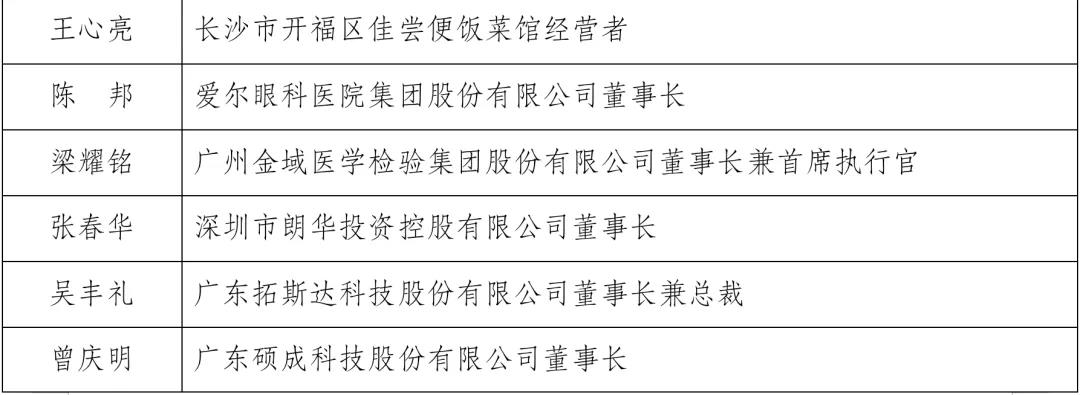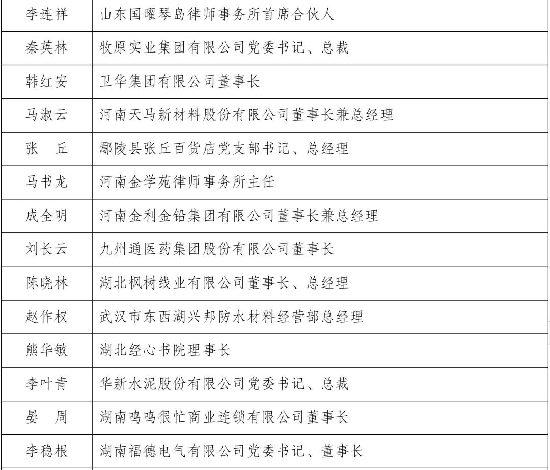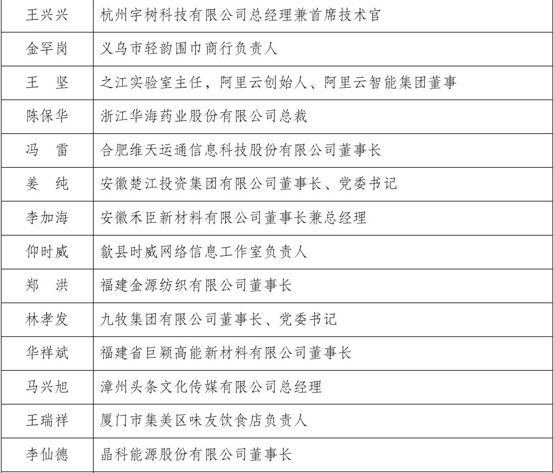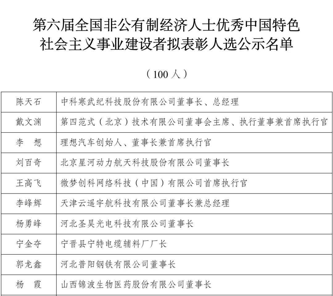 关于第六届全国非公有制经济人士优秀中国特色社会主义事业建设者人选名单的公示 中央统战部、工业和信息化部、人力资源社会保障部、市场监管总局和全国工商联共同开展第六届全国非公有制经济人士优秀中国特色社会主义事业建设者评选表彰活动。为充分发扬民主、广泛听取意见、接受社会监督,现将100名全国非公有制经济人士优秀中国特色社会主义事业建设者拟表彰人选名单和8名后备人选名单予以公示。公示时间从2025年7月7日起,至7月13日止。如对人选名单有异议,请于公示期间通过电话、传真、邮件和信函(以到达日邮戳为准)等方式向第六届全国非公有制经济人士优秀中国特色社会主义事业建设者评选委员会办公室反映。以单位名义反映情况的材料需加盖单位公章,以个人名义反映情况请签署实名,并提供联系电话。 电话:010—64095226(兼传真) 电子邮箱: jszgongshi@163.com quanguogongshi@163.com 通信地址:北京市西城区后海北沿44号 邮政编码:100009 第六届全国非公有制经济人士优秀中国特色社会主义事业建设者评选委员会办公室 2025年7月7日 ![]() ![]() ![]() ![]() ![]() ![]() ![]() ![]() ![]() ![]() ![]() ![]()