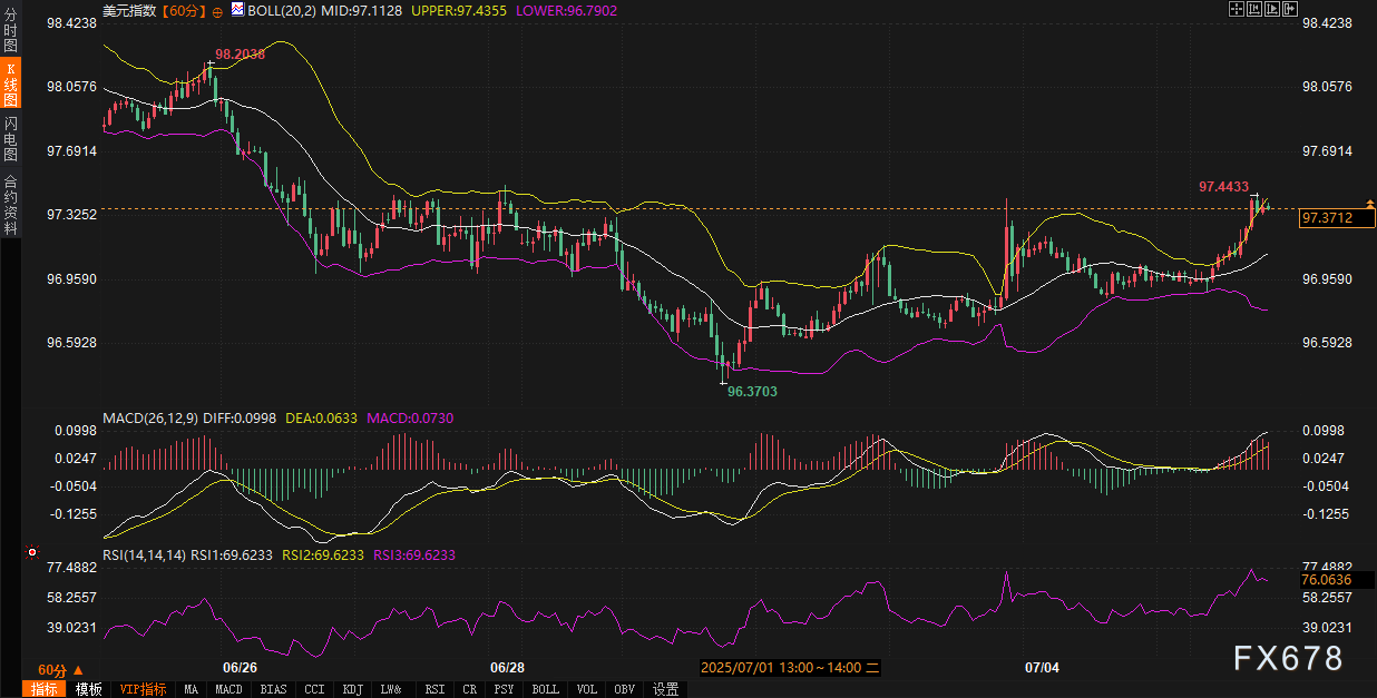 周一 7月7日 全球外汇市场聚焦美元指数动态 截至当日 美元指数报97 3702 日内上涨0 38 延续了近期多空博弈下的震荡特征 当前市场环境中 美国经济数据的韧性 美联储政策预期的变化 以及外部事件引发的避险情绪波动 ...