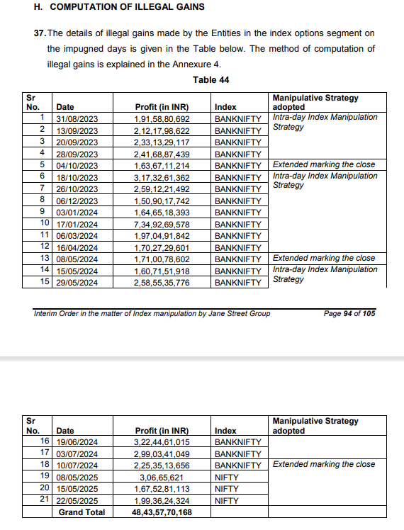 SEBI总结称,Jane Street当日在现货股票、股票期货、指数期货和指数期权等多重市场板块中同时进行交易,这本身并不构成任何违规行为。然而,使Jane Street的交易模式区别于其他交易的,是其总交易价值。Jane Street对标的成分股和期货市场的干预强度和规模巨大,并且在现货和期货市场中进行大规模、激进交易后快速反转,这缺乏任何合理的经济依据。 SEBI举例称,在早盘买入拉抬指数阶段,Jane Street贡献了全市场交易额的15%至25%;其中现货股票中,Jane Street的交易集中度高达23.21%,排名第二的参与者仅8.09%。 目前,Jane Street已对SEBI的调查结果提出异议,表示将进一步与监管机构沟通。根据规定,Jane Street可在收到禁令后21天内对监管机构的“初步观察结论”提出质疑。 散户推动印度期权市场活跃度畸高 值得注意的是,近年来,受印度主要股指表现良好推动,散户投资者大量入市,这构成了Jane Street等外资量化机构操纵市场的重要背景。此前,有外资机构亚太区股票研究部分析师向记者表示,散户投资者正大量地、持续地流入印度资本市场。因此虽然短期印度市场有所过热,但资金面上个人投资者的买入对市场形成了重要支撑。 印度国家证券交易所的数据显示,截至2025年5月,注册投资者总数约为1.15亿。而2020年3月底,这一数字仅为3100万,相当于每年增长1600万。 更特殊的是,在散户投资热潮的推动下,印度成为全球合约交易量最大的衍生品市场。国际期货业协会(Futures Industry Association,FIA) 公布的数据显示,2024年印度的股票期权市场交易量占全球交易量的89%。FIA表示,个人投资者的快速增加是推动这一增长的关键因素。 衍生品交易人士提示称,印度的期权市场流动性充裕,甚至比部分股票本身流动性更充裕。当期权的流动性比现金产品(股票和期货)还要高时,就会出现一个畸形的市场,这一特殊环境是Jane Street操纵策略成功的关键。 SEBI报告显示,仅2024年1月17日单日,Jane Street便获利超过73亿卢比(约8600万美元),这是其在印度市场最赚钱的一天。在2023年1月至2025年3月期间,Jane Street通过在印度衍生品和现货市场交易获得约3650亿卢比(约43亿美元)的总收益。 ![]() SEBI援引了该机构此前一份研究报告的结论,称93%的散户投资者在期权市场交易中亏损。此类亏损与Jane Street因涉嫌操纵现货、期货及期权市场而获得的异常高额利润形成鲜明对比,充分反映了Jane Street通过非法活动造成的深远损害。 自去年11月以来,印度国家证券交易所开始对期权交易实施多项限制,包括提高最低投资限额和增加交易手数。这些措施已有效降低今年的交易热度。FIA交易量数据显示,今年4月,全球交易所交易衍生品交易量为94.8亿份合约,较2024年4月下降37.5%;全球期权交易量在4月份降至66.6亿份合约,较去年同期的4月下降了超过47%,其中大部分降幅出现在印度。 (文章来源:上海证券报) |