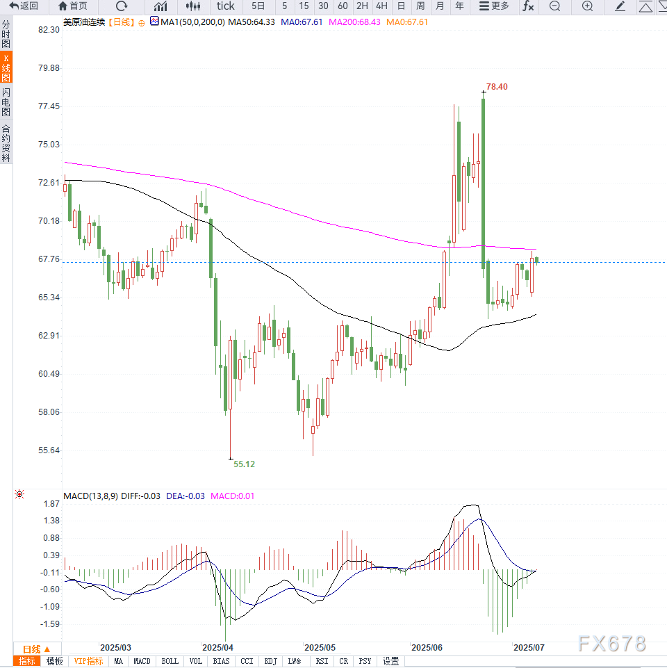 周二原油价格小幅回调,主要受到美国贸易政策变化与OPEC+超预期增产的双重影响。 ![]() “强劲的美国汽油需求是当前支撑油价的关键短期因素。”——据市场调查显示某机构分析师表示 美国商品期货交易委员会(CFTC)数据显示,截至7月1日的一周内,基金经理大幅增加了原油期货和期权的净多头头寸,反映市场在进入美国假期前保持偏多操作情绪。 OPEC+决定八月增产54.8万桶/日,超出先前三个月的月增41.1万桶/日水平。 该决定几乎撤销了此前自愿减产的220万桶/日的剩余部分。高盛分析师预计,在8月3日召开的下次会议上,OPEC+将再宣布9月增产55万桶/日,从而结束当前的增产周期。 不过,值得注意的是,目前实际产量增长仍未完全达到公告水平,主要新增产量仍由沙特主导。 “虽然公告中的增产幅度较大,但多数成员国因技术或政治限制难以完全兑现,沙特依旧承担了大部分供给压力。”——能源研究公司Kpler指出 目前WTI原油价格徘徊于20日与50日均线之间,短期上行趋势暂未被破坏,但K线连续两日录得上影线,显示上方抛压逐步显现。相对强弱指数(RSI)位于50上方,尚未进入超买区间,MACD指标显示红柱动能收缩,或预示价格短期将震荡整理。 关键支撑位关注66.80美元附近(前期低点与上升趋势线交汇处),若跌破该位,将打开回测65美元的空间;而上方初步阻力位位于68.50-69.00美元区间,若能有效突破,有望重新挑战70美元关口。 “若WTI原油维持在66.80美元上方运行,整体偏多结构仍有望延续。”——据市场调查显示的技术分析观点 ![]() 从当前走势来看,油价已进入政策与数据主导的波动阶段。一方面,美国关税新政增强了市场对贸易担忧情绪,另一方面,OPEC+增产虽超预期,但执行力度有限。 短期内,油价将在“需求强劲”与“宏观不确定性”之间拉锯。建议关注8月初OPEC+会议以及美国宏观数据的进一步动态,这将决定油价下一阶段方向。 ![]() |