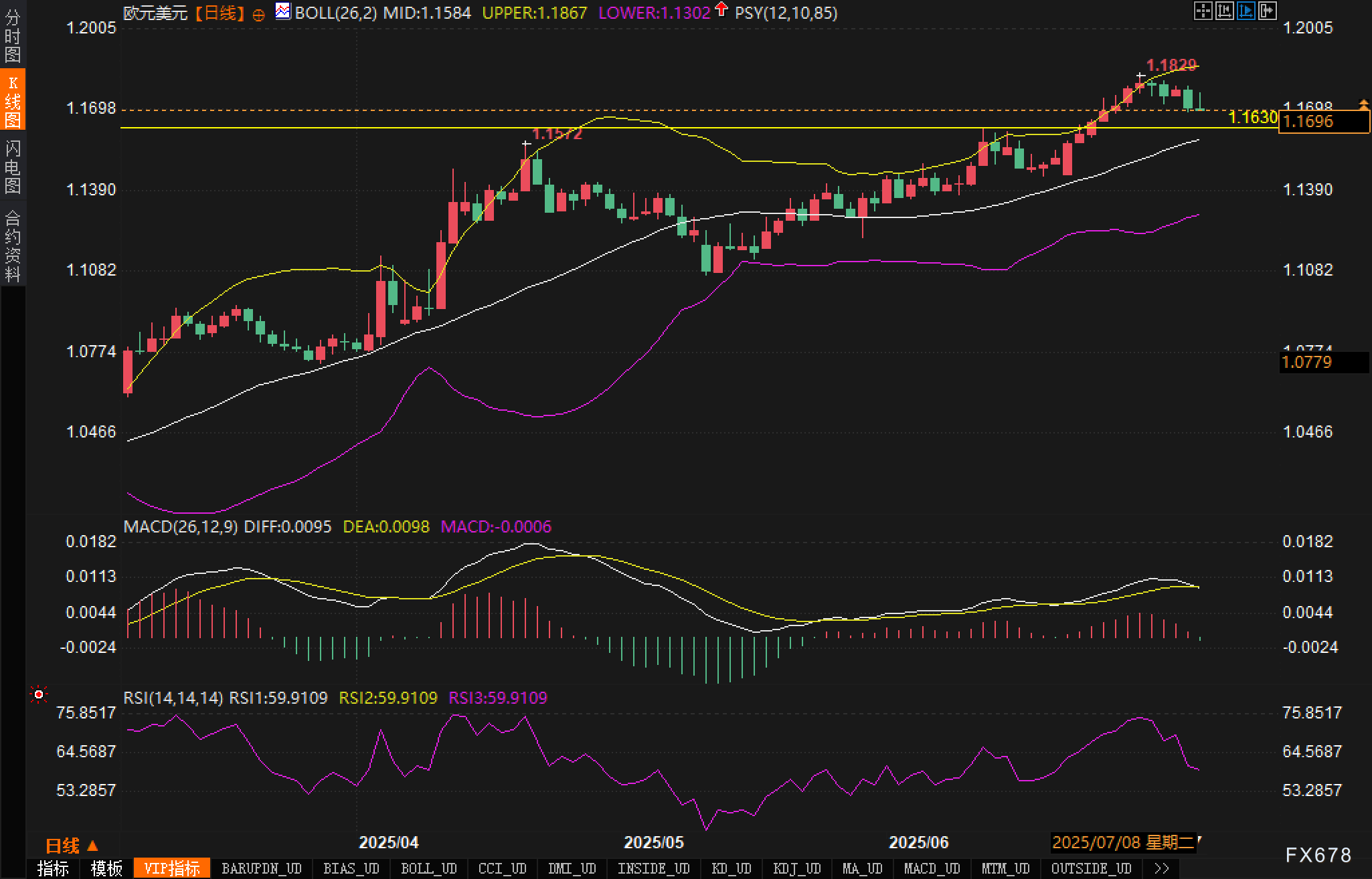 周二 7月8日 欧元兑美元汇价在日线图中展现整理态势 虽盘中一度反弹至1 1770附近 但北美时段在1 1700附近弱势徘徊 基本面方面 美国总统特朗普再度延迟关税落地时间 引发美元短线走软 但市场情绪偏谨慎 美元随后反弹 ...