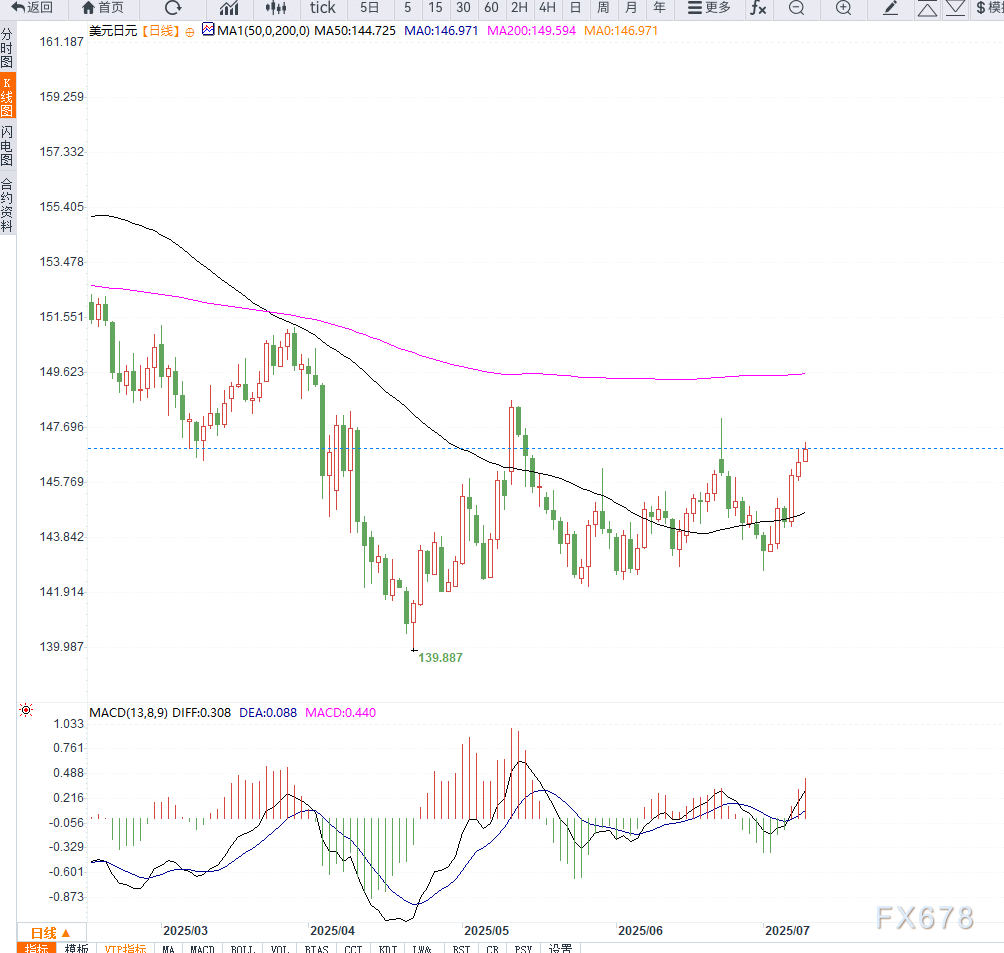 日元连续承压 美元强势拉动USD JPY突破两周高点周三亚洲时段 日元继续走弱 美元兑日元突破147关口 触及两周新高 投资者对美国总统特朗普宣布自8月1日起对日本商品征收25 关税的影响深感担忧 普遍预计这将拖累日本经 ...