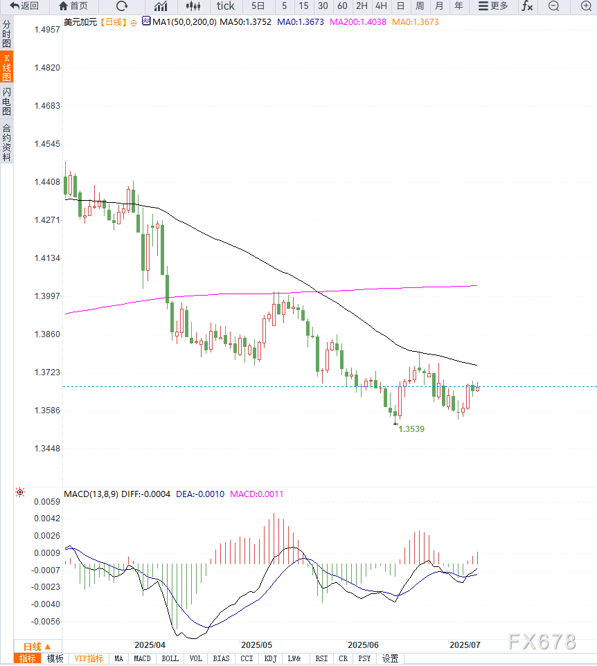 美元强势延续,USD/CAD维持上行通道 ![]() 随着市场普遍认为美国关税可能推高通胀,美联储将倾向维持较高利率时间更长,从而压制市场对年内迅速降息的预期。美元因此维持两周高位附近的强势表现,支撑了美元兑加元的进一步上行空间。 尽管如此,根据CME FedWatch工具,市场仍预期10月起将有50个基点的降息空间,这意味着投资者将密切关注FOMC会议纪要是否暗示实际政策路径的转变。 油价疲软对加元支撑有限 尽管加拿大加元对原油价格高度敏感,但近期油价走势相对疲软,加上美元主导趋势明显,油价的微幅波动未对加元构成有效支撑。市场对加元的买需因此有限,进一步巩固USD/CAD的上行趋势。 USD/CAD汇价目前运行于1.3700关口附近,为近八个交易日高点,短线维持上涨结构。若突破1.3715阻力区,可能打开进一步上行空间,目标看向1.3760和1.3800水平。下方支撑位于1.3640与1.3600区域,若失守将削弱短期看涨前景。 技术指标方面,4小时图RSI指标温和上行,MACD显示动能正增强,整体偏向短线上行延续。 ![]() 在美元高企、铜关税冲击与油价疲软的多重背景下,加元面临明显基本面压力,而USD/CAD则处于技术和情绪双重利好之中。短期内市场聚焦FOMC会议纪要内容是否强化“高利率更久”的基调,若纪要鹰派,则美元或进一步走强,推动USD/CAD突破当前区间,挑战更高目标位。 ![]() |