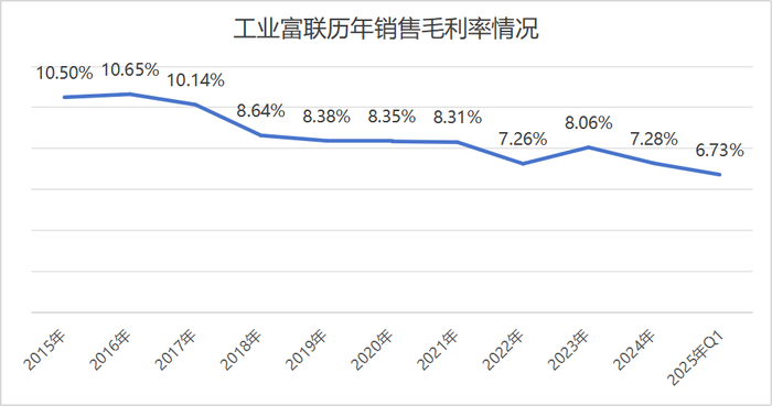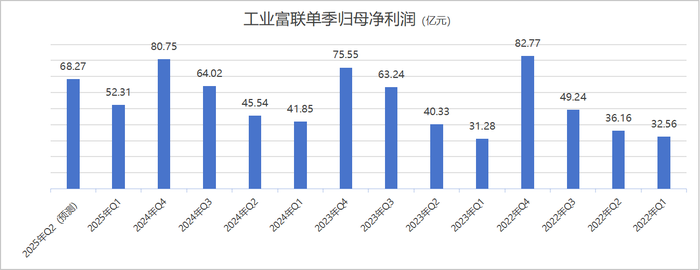 首先,云计算业务上升为第一大业务。 此前,云计算业务占比在四成左右。随着AI需求的爆发,公司云计算业务在2024年大增超60%至3,193.77亿元,业务占比一举超过半壁江山,来到了52.43%。 今年上半年,云计算业务继续高增。“公司云计算业务在二季度实现高速增长,整体板块营业收入较去年同期增长超过50%。”工业富联表示。 界面新闻记者由此推断,云计算业务于公司营收的占比还在继续上升。 这一业务的增加主要原因在于,产品结构优化,产品量产加速爬坡,客户对AI数据中心Hyper-scale AI机柜产品需求不断增加。 具体产品上,AI服务器营业收入同比增长超过60%,云服务商服务器营业收入同比增长超过1.5倍。 这两项高增产品增速与去年表现相比又有差异。去年AI服务器营业收入增速为超150%,云服务商服务器营业收入增速为超80%。 “先进AI算力的GPU模块及GPU算力板等产品的出货,在第二季实现显著增长。”工业富联指出。 其次,通信及移动网络设备出现新增长点。 这一业务在去年表现平平,营收增幅只有3.20%,营收占比从过往的58%左右降至47%左右。 业绩预告中,工业富联用“稳健增长”来形容通信及移动网络设备业务今年上半年的表现,可见增速依然不及云计算业务。不过,二季度出现新亮点。 高速交换机方面,去年工业富联800G交换机今年上半年爆发式增长,仅二季度单季的营业收入便达到了2024全年的3倍。这一产品去年才陆续开始出货。 800G交换机的需求由AI大模型训练需求增长而来。市场对算力基础设施网络带宽与传输速率的需求快速提升,数据流量的增长使得交换器市场从100G/200G过渡到400G/800G的产品,后续还将迈向1.6T产品。 根据第三方机构Dell'Oro Group预测,2025年800G交换机端口将有望超越400G成为主流配置。 存货、现金流、毛利率三大警报拉响 界面新闻注意到,在优秀业绩的背后,工业富联有几大风险值得投资者注意。 首先,存货激增埋下隐患。 在公司主营业务高速增长的同时,存货同步上升存在其合理性,不过工业富联今年存货上升的速度过快。 截至2023年末,工业富联存货为766.83亿元,2024年末为852.66亿元,一年才上升不到90亿元。但到2025年一季度末,公司存货大幅上升至1,199.77亿元,较上年末增加347.11亿元,增幅超过40%。 若存货未能及时消化,或一定程度上影响公司的现金流表现。 ![]() 工业富联近年存货情况(亿元) 制图:界面新闻记者 其次,经营性现金流骤降。 今年一季度业绩已是工业富联史上同期最佳表现,一季度归母净利润首次超过50亿元。但现金流表现却不达预期,一季度经营活动产生的现金流量净额只有12.99亿元,2023年和2024年同期为208.44亿元和52.05亿元。 二季度这一指标会否改善,值得关注。 再次,销售毛利率跌破7%创新低。 在营收规模不断扩大的同时,工业富联也面临着激烈竞争,销售毛利率逐年下滑趋势十分明显。 尤其是2025年一季度,公司销售毛利率已下破7%,到6.73%,为上市以来新低。二季度公司销售毛利率能否止跌呢? 就中高端产品出货率上升后,毛利率水平是否改善一事,界面新闻向工业富联提问,相关人士未有回应。 ![]() 工业富联历年销售毛利率表现 制图:界面新闻记者 此外,客户集中度过高,也或将成为公司的一大隐患。 工业富联下游行业的市场集中度高,直接导致公司客户集中度高。在2024年,公司前五大客户的营收占比高达65.19%。 今年这一趋势未有缓解。工业富联在业绩预告公告中提到,“公司在主要客户中的市场份额持续提升”。 这种份额的提升是一把双刃剑,客户业绩高增时可同步成长;若未来主要客户需求下降,或在竞争之下订单流失,或将直接影响公司业绩表现。 需求“3-5年内强度不会减弱” 高增长过后,工业富联下半年业绩会趋势延续吗?这与市场需求和自身的产能供给两大因素相关。 行业需求方面,自聚焦AI以来,工业富联的业绩便与AI行业的发展绑定。自2024年下半年开始,云计算巨头加大云和AI基础设施投资力度。全球前四大云服务商公布的2025年预计资本支出已超过3,200亿美元,同比皆有两位数以上增长。 微软预期2025财年投入总计800亿美元用于AI基础设施,目标在2026年前将AI训练算力提升5倍;谷歌预计2025年将投资约750亿美元的资本支出;亚马逊预计2025年资本支出约为1050亿美元,其中大部分将用于人工智能和数据中心支出。 在日前的业绩说明会上,工业富联董事长、总经理郑弘孟表示,中美云厂商仍在激烈的竞争中全力布局,参与“算力竞赛”。云厂商的CAPEX(资本支出)必然会保持一定的强度和持续性的增长,其断言“预计未来3-5年内强度不会减弱”。 郑弘孟还透露,从客户订单能见度及需求来看,“全年订单增长十分强劲”。 根据市场研究机构IDC预测,全球生成式AI市场规模预计从2023年的150亿美元增长到2027年的1,500亿美元,年复合增长率超过86%。 因此,AI发展土壤未发生变化的前提下,工业富联年内的增长或有保证。 产能方面,工业富联能否跟上日益增长的市场需求呢? “公司全球化产能布局完善,在中国大陆、美国、墨西哥、欧洲等多个国家地区有布局。”郑弘孟表示。 工业富联在中国大陆的投资占比最高,在深圳、郑州、杭州、赣州、绍兴等地都有布局。 在建产能主要以云计算为主。2024年年报显示,工业富联期末在建余额31.73亿元,较期初增加了6.65亿元。增加的部分主要在云计算业务,其在建公司由10.62亿元