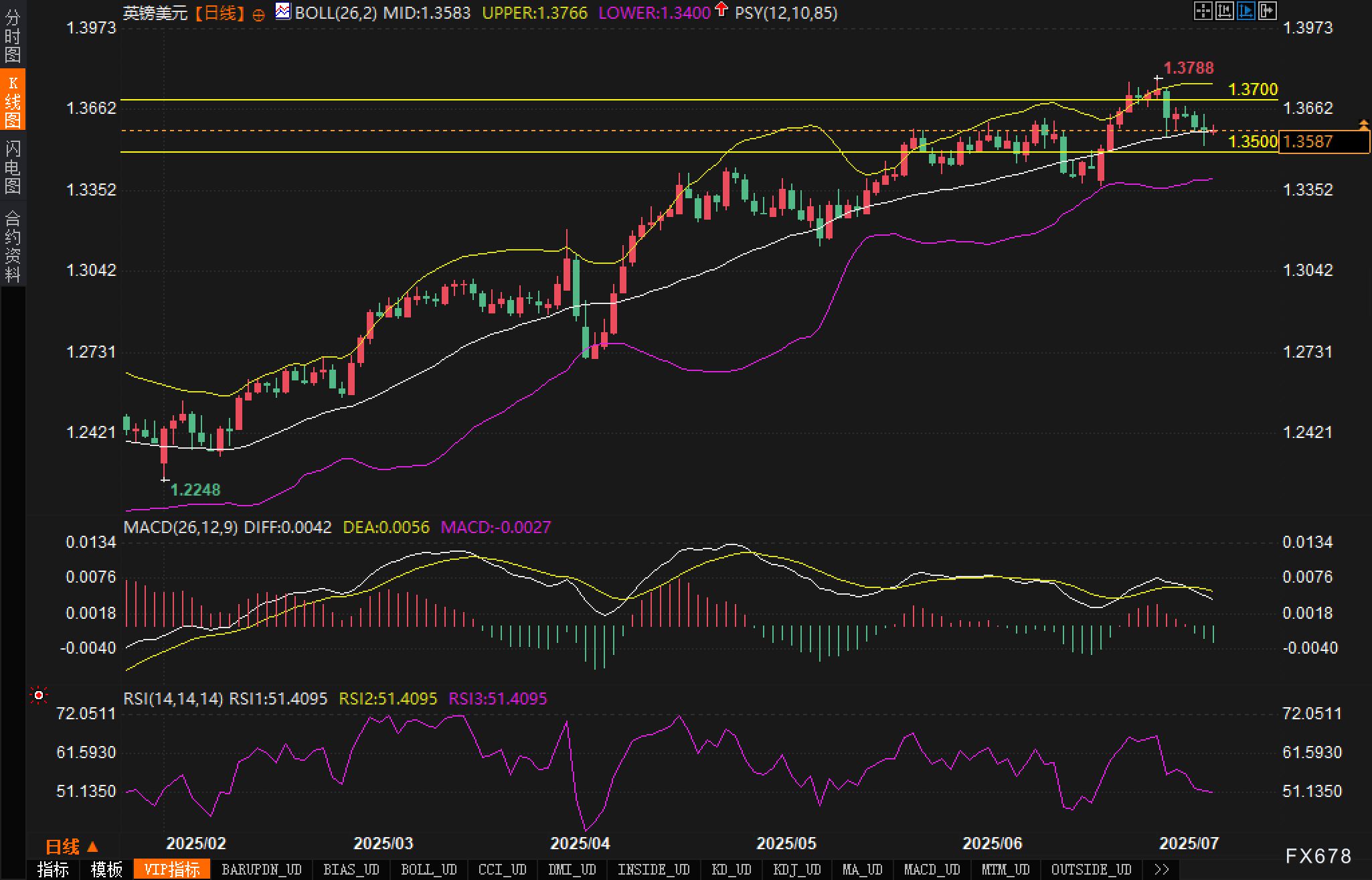 周三(7月9日),英镑兑美元汇价美市盘前小幅走低至1.3580附近,波动受限,维持震荡格局。此前,美国总统特朗普宣布对铜产品加征50%进口关税,并威胁未来对药品及部分国家增加征税,美元指数维持高位运行,现报97.6,逼近本周高点97.8,抑制英镑反弹动能。英国方面,财政部放宽赤字控制引发英国国债抛售,市场对财政可持续性风险保持警惕。 ![]() 英美宏观分歧再度浮现。美国总统特朗普于周二表示将对铜加征50%的关税,并放出将对去美元化行为征收额外10%关税的警告,同时计划对药品类商品明年加税至200%。尽管尚未明确时间表,但分析认为该表态维持了美元强势格局。 而英国方面,财政部扩大福利支出计划,打破财政自律承诺,引发英国国债市场动荡。英国财政大臣宣布提高全民信贷标准津贴,预计将令政府在2029-2030财年增加48亿英镑负担,导致10年期英债收益率攀升至4.63%,为发达经济体中第三高。 此外,市场关注本周五即将公布的英国5月月度GDP和工业产出数据,以及美联储7月17-18日政策会议纪要内容,或成为未来走势催化剂。 技术面: 当前汇价运行在日线级别布林带中轨(1.3583)附近横向整理,短线缺乏方向性突破信号。从布林带来看,整体处于“开口缩窄”状态,布林带上轨与下轨分别为1.3766与1.3400,表明波动率收敛,行情正酝酿方向性突破。 ![]() MACD指标方面,DIFF线略低于DEA,且柱状图呈现绿柱放大,动能转弱,暗示短线存在下探风险;RSI指标则维持在51.40一线,尚未进入超卖区域,市场情绪偏中性偏弱。 综上分析认为,目前英镑兑美元汇价处于整理格局,方向选择或需等待宏观事件指引。 市场情绪观察 市场目前处于典型的观望状态。美元因特朗普政策不确定性与避险属性而维持强势,但尚未出现明显突破;英镑方面,财政风险加剧叠加经济数据空窗,情绪整体偏谨慎。交易员倾向等待FOMC纪要与英国GDP数据,寻找方向线索。 后市展望 多头展望: 分析认为若英国5月GDP与工业产出超预期、FOMC纪要显露鸽派倾向,汇价有望上破1.3700阻力线并挑战1.3788前高,交易员关注布林带上轨1.3766附近压力是否构成突破节点。届时,技术上可能形成“震荡筑底—平台突破”的看涨形态。 空头展望: 相反,分析认为若美联储态度继续偏鹰或英国经济数据疲弱,汇价可能下破1.3500支撑区间,向1.3400(布林带下轨)寻求支撑。若进一步跌穿,行情或开启新一轮下跌通道,回撤至1.3350甚至前期震荡起点1.3040区域。 ![]() |